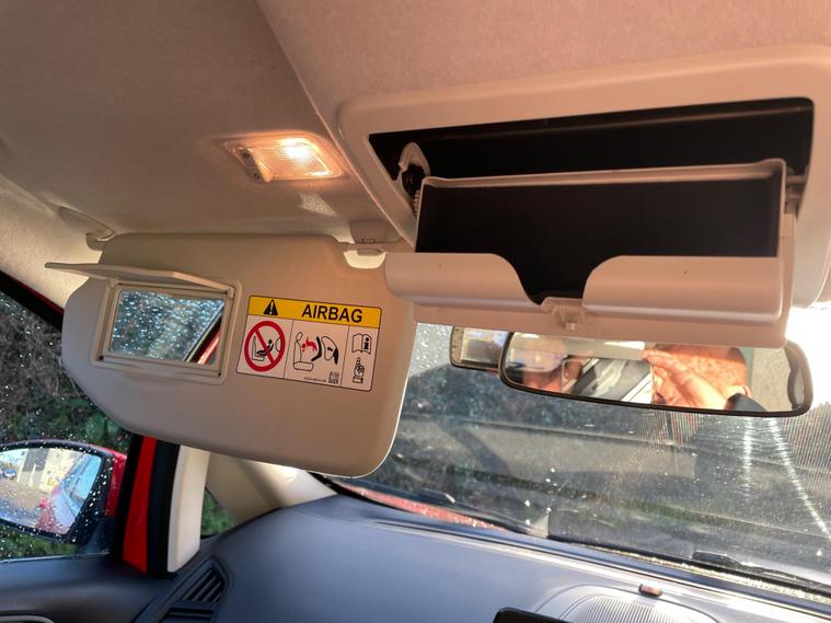 - Driver and Passengers Sun Visor with Covered Vanity Mirror and Ticket Strip on Drivers Side