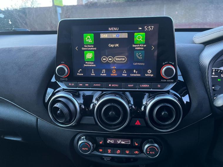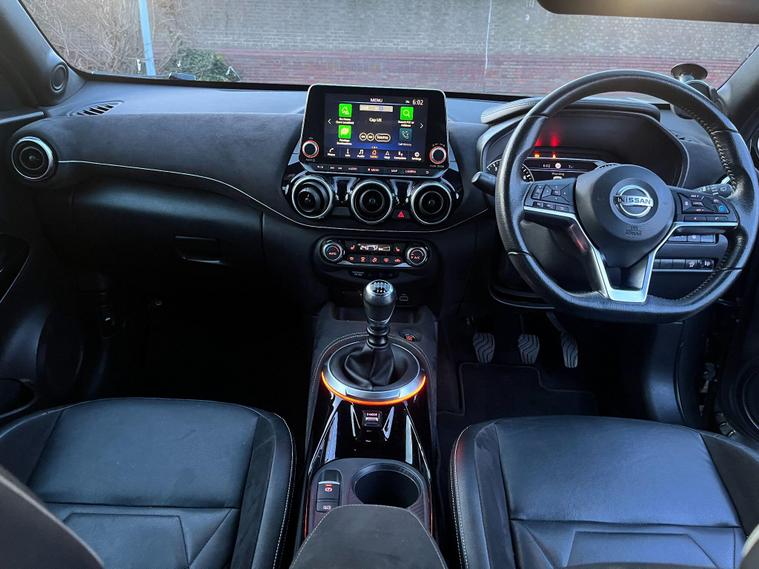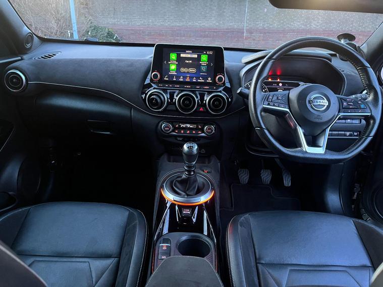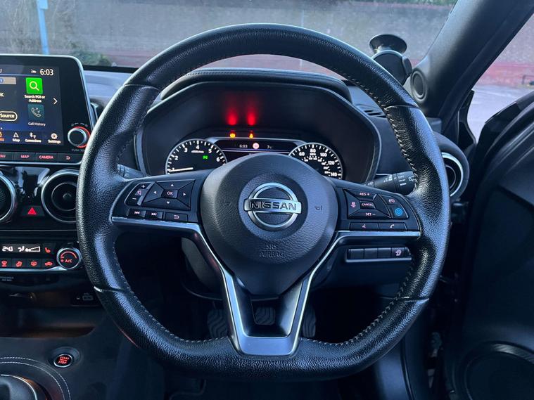 This 2020 Nissan Juke DIG-T Tekna+ boasts a clear vehicle history, offering you peace of mind. This stylish Tekna+ model is equipped with a 1.0L Euro 6 petrol engine, providing an efficient and enjoyable driving experience. Key features include front and rear parking sensors to aid manoeuvring, a comfort pack with climate control for a pleasant cabin environment, and keyless entry with a push button start for ultimate convenience. Enjoy your favourite music and take calls hands free with the integrated USB AUX socket and Bluetooth connectivity.With a fuel economy of 46 mpg, this Juke is designed to be economical for your journeys, and its low CO2 emissions further highlight its efficiency compared to many other vehicles. The combination of its practical features, comfortable interior, and impressive fuel economy makes this 2020 Nissan Juke DIG-T Tekna+ a compelling choice for those seeking a well equipped and efficient compact car..