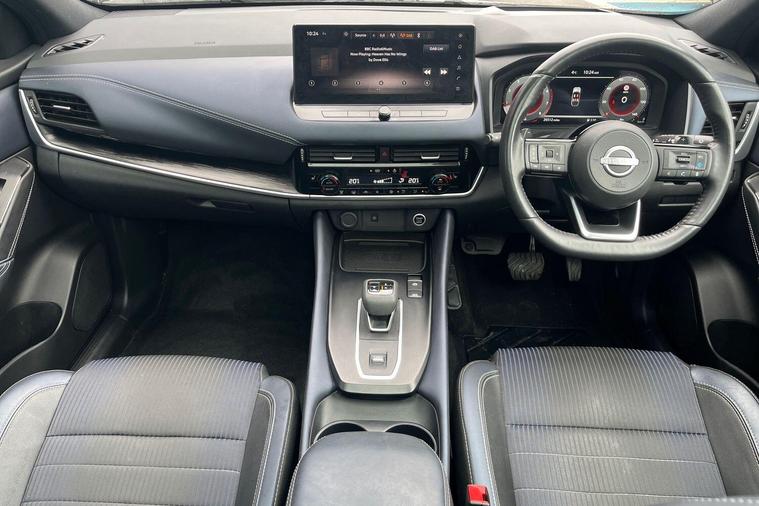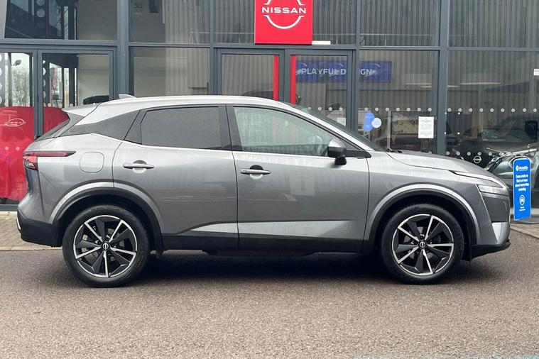 This 2023 Nissan Qashqai DIG-T Tekna is a Nissan manufacturer approved vehicle, offering peace of mind. It features a 1.3L Petrol Hybrid engine, meeting Euro 6 emission standards. This Tekna trim level comes equipped with advanced safety and convenience features, including Blind Spot Warning with Intelligent Blind Spot Intervention, a Rear View Camera with Parking Assistance, and an Intelligent Around View Monitor for 360 degree parking assistance. The vehicle also boasts LED Headlights with Adaptive Driving Beam for enhanced visibility.The Qashqai DIG-T Tekna is designed for practicality and ease of use, offering a large boot space perfect for luggage or shopping. Its low insurance group rating makes it an economical choice for many drivers. These attributes, combined with its comprehensive suite of driver assistance technologies, position this Qashqai as a superior option compared to other vehicles in its class, providing a safer and more convenient driving experience..