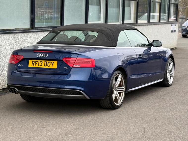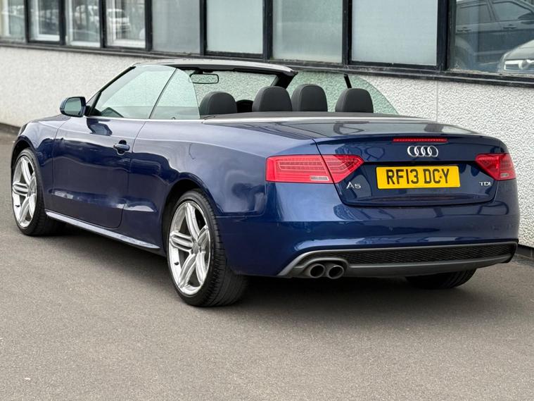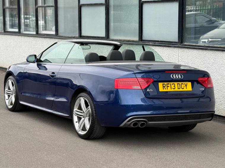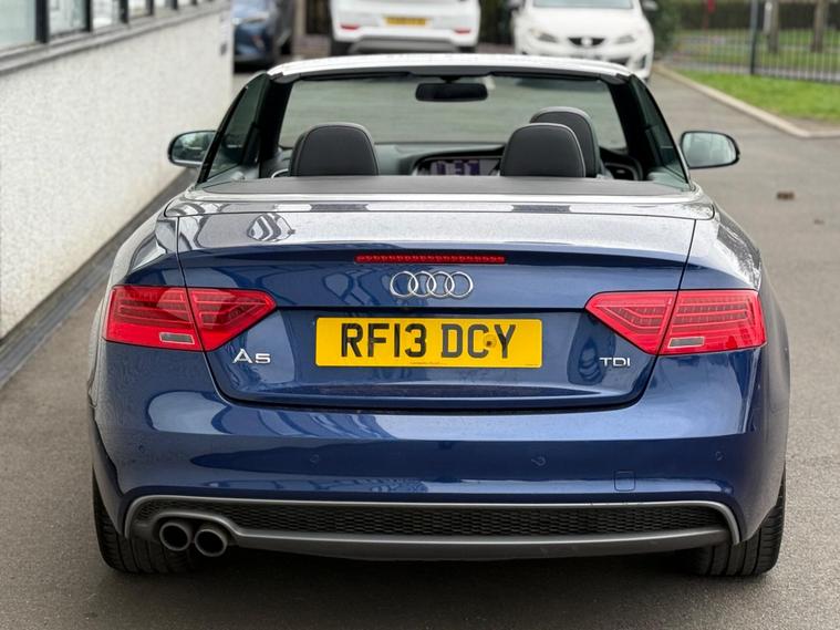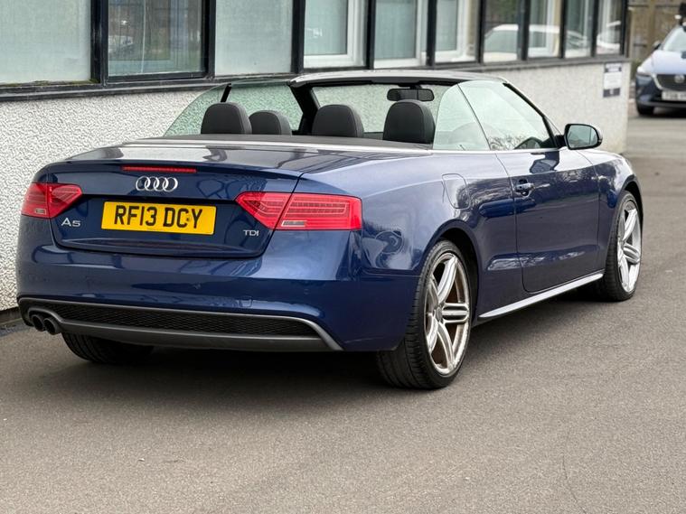 This 2013 Audi A5 Cabriolet TDI S line Special Edition offers a refined driving experience with its powerful 2.0 litre diesel engine. This particular example benefits from a low insurance group, making it an attractive choice. Inside, you will find a host of desirable features including Mobile Telephone Preparation with a Bluetooth interface, ensuring seamless connectivity on the go. Enjoy your favourite music through the impressive Bang and Olufsen Sound System, and maintain perfect comfort for all occupants with Deluxe 3-Zone Climate Control, complete with rear air conditioning controls. Parking is made easier with the integrated rear parking sensors.The S line Special Edition trim level signifies a higher specification, enhancing the already premium feel of this Audi A5 Cabriolet. The inclusion of features such as the advanced climate control and the premium sound system demonstrate a level of comfort and entertainment that sets this vehicle apart from others in its class. This combination of performance, luxury, and practical features makes this Audi A5 Cabriolet a compelling option for those seeking a stylish and well equipped convertible..