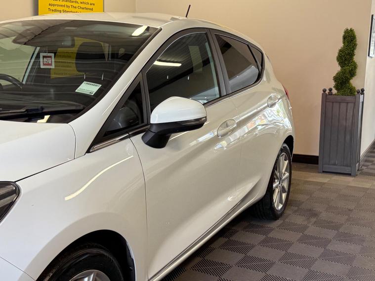 2019 Ford Fiesta 1.0T EcoBoost Titanium Euro 6 (s/s) 5dr finished in Frozen White, having covered 58, 760 miles. Supplied with Full V5 and presenting very well for its age and mileage. The vehicle benefits from good service history and drives exactly as it should.Service History:2020 – 7, 513 miles2022 – 18, 843 miles2023 – 27, 072 miles2023 – 30, 486 miles2024 – 40, 279 miles2025 – 49, 274 milesA service and MOT will be completed as part of our preparation process to ensure the vehicle is ready for its new owner.Optional Specification Includes:Premium body colour – Frozen WhiteDoor Edge ProtectorsDynamo Ebony Cloth InteriorA 3-month comprehensive warranty is included, with the option to extend for up to two years. Part exchange welcome for any value, and our Buying Department can provide prompt valuations. Nationwide delivery is available at an additional cost upon request. You can reserve this vehicle today with a £250 fully refundable deposit. We have over 150 vehicles in stock to choose from. Established in 2021, we pride ourselves on excellent customer service and have 200+ positive reviews. All our retail vehicles are fully health-checked and prepared to a high standard prior to sale. As an AA Approved Dealer with Trading Standards endorsement, every vehicle includes 12 months free AA roadside breakdown and recovery, regardless of age, value or mileage. We are regulated and authorised by the Financial Conduct Authority (FCA) under FRN: 1014981..