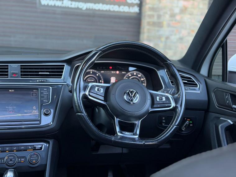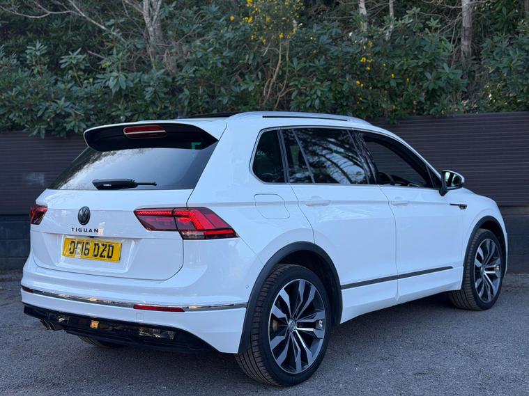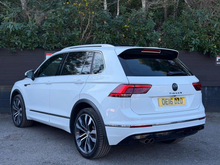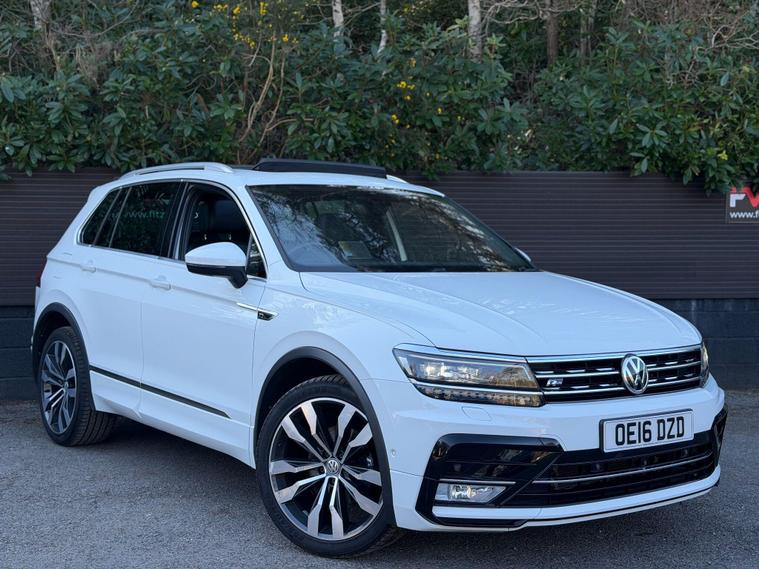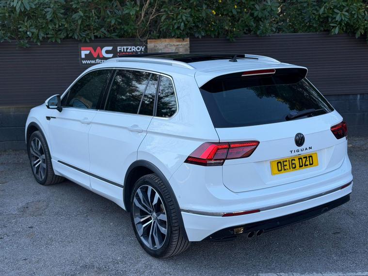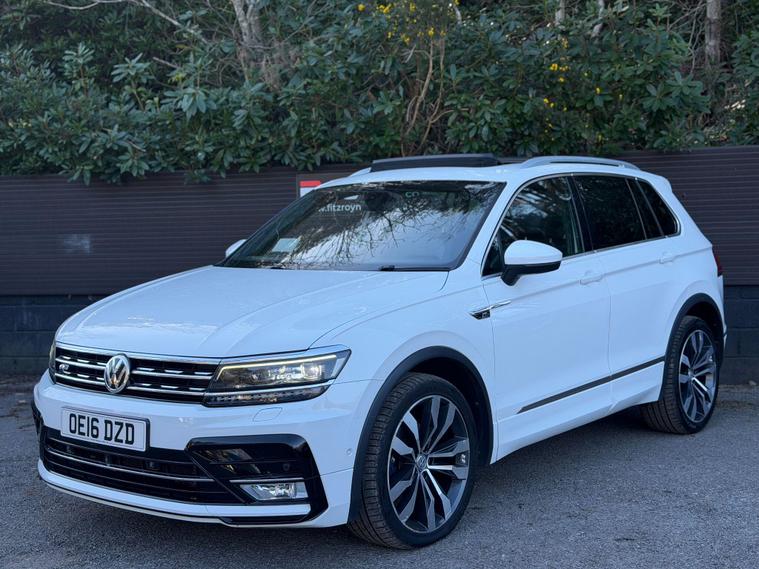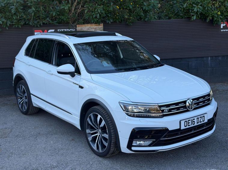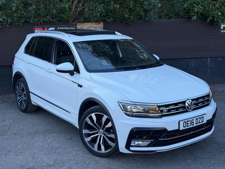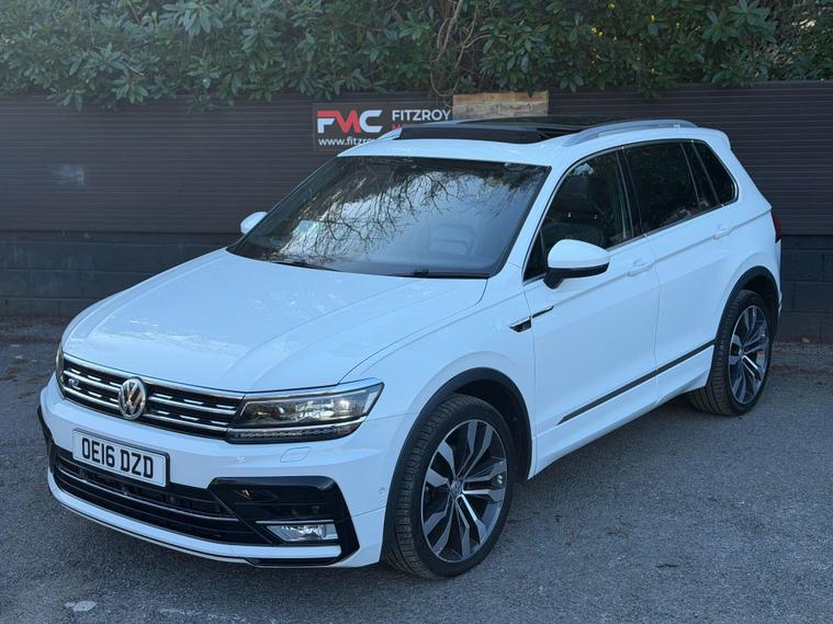 We are delighted to offer this Volkswagen Tiguan 2.0 TDI R Line 4Motion, a high specification SUV that combines performance, practicality, and premium features. Supplied with a full service history and 2 keys, this Tiguan has been well maintained and presents superbly throughout.Finished in a stunning white with diamond cut alloy wheels and rear privacy glass, this R Line model has a strong and sporty road presence. The 4Motion four wheel drive system paired with the 2.0 diesel engine delivers excellent performance and confidence in all conditions, while drive modes allow you to tailor the driving experience to suit your needs.Inside, the cabin is finished in black leather with heated seats and electric memory function, offering excellent comfort and convenience. It is packed with high end features including adaptive cruise control with speed limiter, a rare heads up display, auto hold, and a tilt and slide panoramic roof that brings light into the cabin. Technology highlights include 360 degree cameras with tow mode, self park function, and an electric tailgate, making this a very easy and practical vehicle to live with.Spacious, refined, and extremely well equipped, this Volkswagen Tiguan R Line offers a perfect balance of luxury, performance, and everyday usability.At Fitzroy Motor Co, all our vehicles are hand picked and purchased directly from private customers. Every vehicle is HPI clear with a report provided for your peace of mind. Each car undergoes a thorough inspection and is prepared for same day pickup. If a vehicle has six months or less MOT remaining, we provide a fresh 12 month MOT.Nationwide delivery is available from £149 and finance options are available from 8.9 percent APR with zero deposit plans.We are open seven days a week. Call us on 01425318542 to arrange a viewing or test drive..