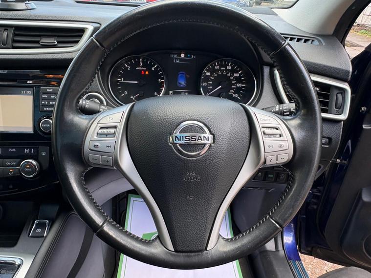 This 2016 Nissan Qashqai dCi n-tec+ boasts an impressively low mileage of just 76, 263 miles, a testament to its careful ownership by only two previous keepers. This Euro 6 compliant 1.6 litre diesel engine is presented in the desirable n-tec+ trim, offering a refined driving experience. Inside, you'll find comfort and convenience with dual zone climate control and a fixed panoramic glass roof that floods the cabin with light. Parking is made effortless thanks to the Around View Monitor, providing a 360 degree bird's eye view, complemented by rear parking sensors. Stay connected on the go with seamless Bluetooth integration for your telephone.The highlights of this Qashqai demonstrate its superiority over other vehicles in its class. With an exceptional fuel economy of 55 miles per gallon, you can enjoy longer journeys with fewer fuel stops. Furthermore, its low CO2 emissions and low insurance group rating mean that running costs are kept to a minimum, making this a truly economical and practical choice for everyday driving..