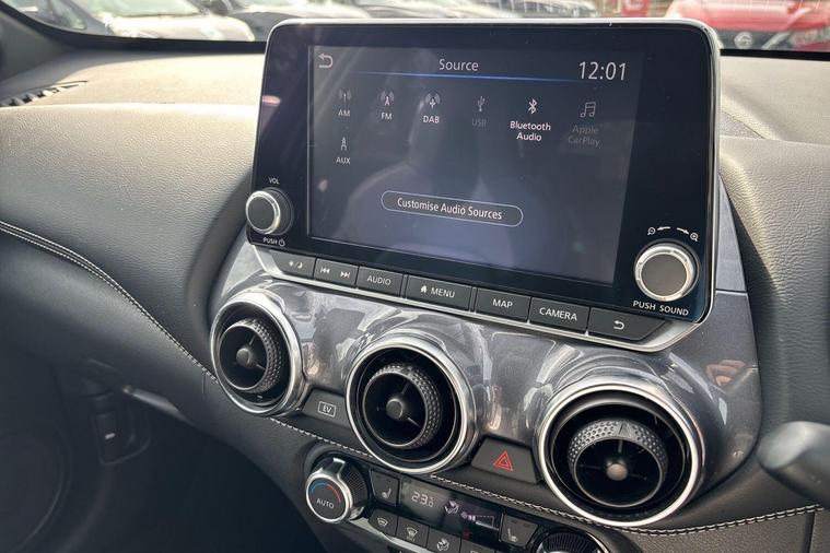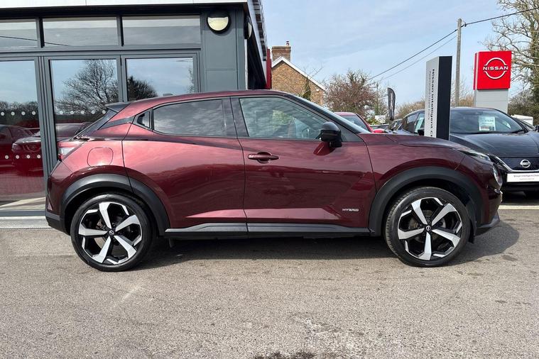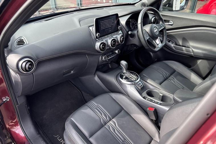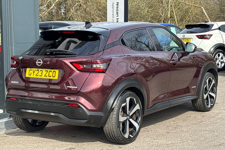 This 2023 Nissan Juke Tekna presents a superb ownership opportunity, having had only one owner since new and benefiting from Nissan manufacturer approval. This stylish compact SUV is powered by an efficient 1.6 litre petrol hybrid engine, meeting Euro 6 emission standards. The Tekna trim level comes equipped with a host of desirable features designed for convenience and safety, including Intelligent Key with walk away lock and approach unlock functions for seamless keyless entry, alongside LED headlights for enhanced visibility.Further enhancing your driving experience, this Juke Tekna includes a Heat Pack for cosy journeys with heated seats and steering wheel, and the advanced ProPilot Pack. This pack incorporates Blind Spot Assistance, Adaptive Cruise Control, and a 360 degree camera for comprehensive parking assistance. With an impressive fuel economy of 55 mpg, low CO2 emissions, and a low insurance group, this Juke offers excellent running costs, demonstrating its advantage over many similar vehicles on the market..