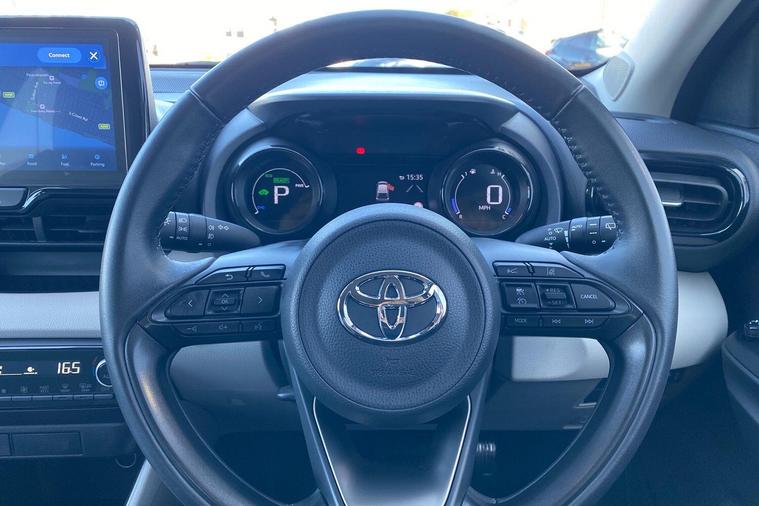 This 2023 Toyota Yaris VVT-h Excel is a Toyota manufacturer approved vehicle with a full dealership service history, having had only one owner and a last service at 14451 miles on 2025-12-13. This Euro 6 compliant 1.5L petrol hybrid model comes with a 12 month warranty and a 12 month MOT provided on purchase. Notable features include Adaptive Cruise Control, Toyota Safety Sense 2, LED Front Light Guide, Automatic Headlights, and Dual-Zone Automatic Air Conditioning.The Yaris VVT-h Excel offers impressive efficiency, achieving a remarkable 66 mpg, and benefits from low CO2 emissions, making it a more economical choice compared to similar vehicles. This well maintained example provides peace of mind with its comprehensive provenance and advanced safety features..