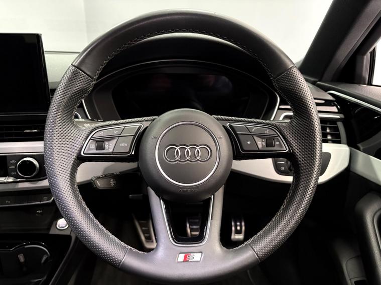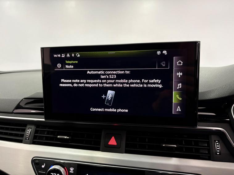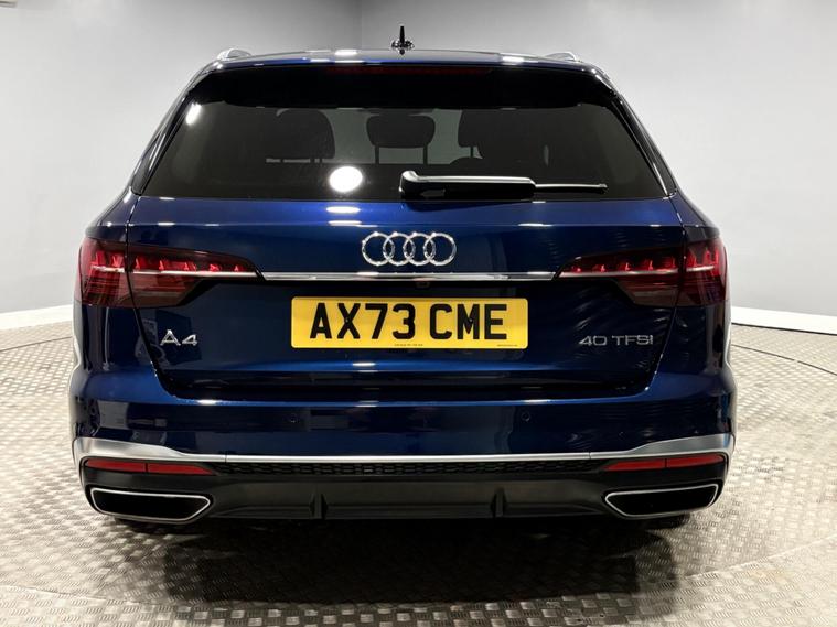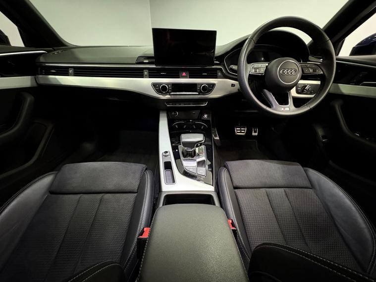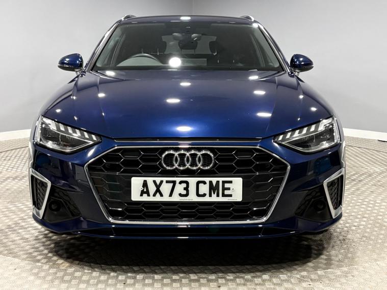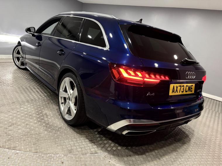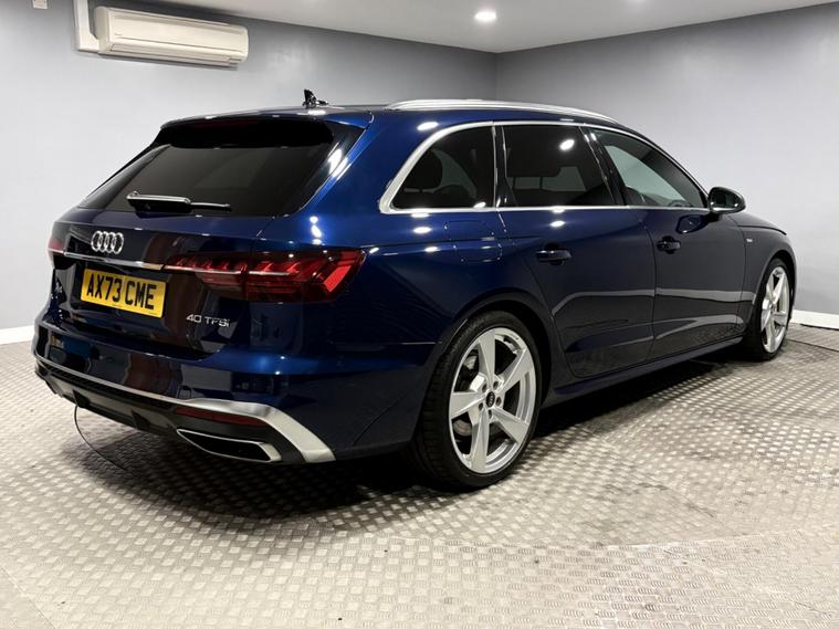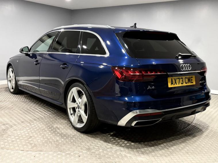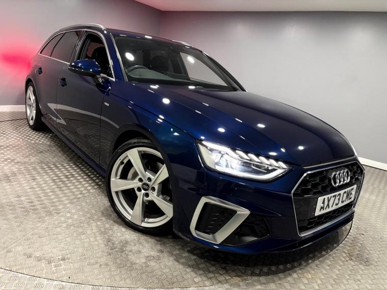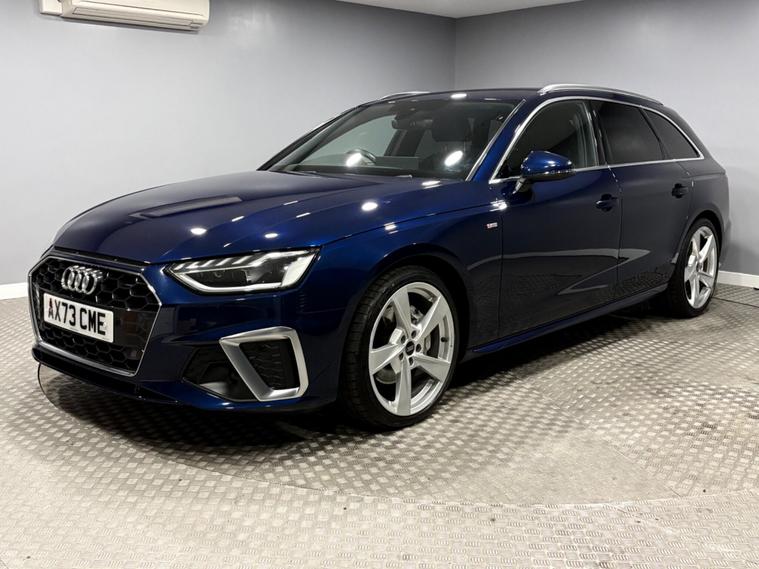 This Navarra Blue 2023 Audi A4 Avant TFSI S line offers a sophisticated driving experience with its Euro 6 compliant 2.0 litre petrol engine. As an S line model, it boasts a sporty aesthetic and comes equipped with a range of desirable features. These include Deluxe 3-Zone Electronic Climate Control for personalised comfort, and the Parking System Plus with front and rear sensors, complemented by a rear-view camera, making manoeuvring effortless. The advanced LED headlights with dynamic rear indicators ensure excellent visibility, while the Bluetooth interface allows for seamless connectivity on the go. The vehicle also benefits from auto tailgate release, navigation, DAB radio, cruise control, multi function steering wheel and much more. Vehicle supplied with 2 keys, Audi serviced at 9k and 18k, Manufacturers warranty until December 2026. Part exchange welcome, finance available.SpecificationsThe data displayed above details the usual specification of the most recent model of this vehicle. It is not the exact data for the actual vehicle being offered for sale and data for older models may vary slightly. We recommend you check the vehicle details with your sales advisor before you buy..
