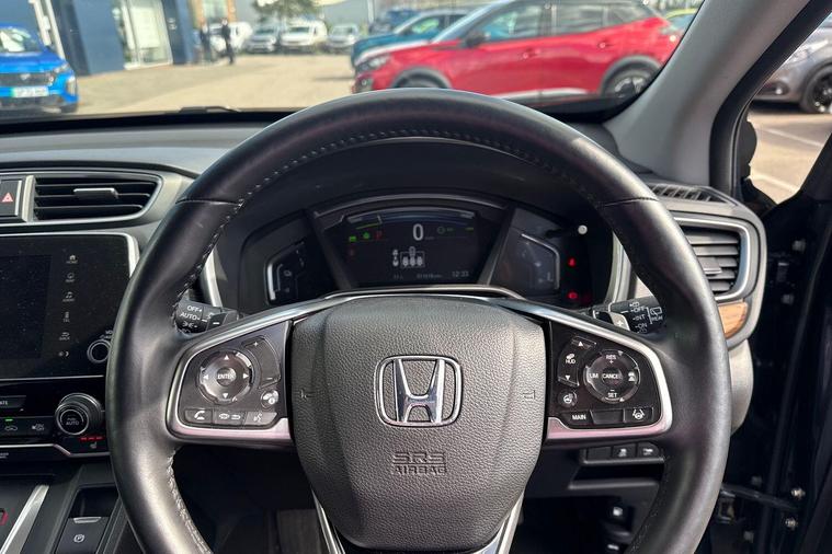 This 2019 Honda CR-V h i-MMD EX presents an exceptional opportunity with its remarkably low mileage of just 11, 800 miles and a single owner from new. This Euro 6 compliant, four wheel drive model boasts a 2.0 litre petrol hybrid engine, offering an efficient and capable driving experience. The EX trim level ensures a premium feel, enhanced by features such as dual zone climate control for personalised comfort, and the Honda CONNECT system with GARMIN navigation, seamlessly integrating Android Auto and Apple CarPlay for your connectivity needs.Further enhancing its appeal are the Smart Entry and Start system for effortless access and ignition, and Intelligent Adaptive Cruise Control for relaxed journeys. The convenience of automatic headlights, activated by a dusk sensor, adds to the sophisticated technology on offer. Beyond its impressive technology, this CR-V provides generous boot space, making it a practical choice for families and adventurers alike. These combined attributes, from its low ownership and mileage to its advanced features and practicality, set this Honda CR-V apart from others in its class..