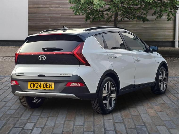 Discover this 2024 Hyundai BAYON T-GDi Ultimate, a stylish and efficient compact SUV. This Euro 6 compliant model boasts a 1.0L Petrol Hybrid engine, offering an impressive fuel economy of 52 miles per gallon. Its Ultimate trim level ensures you experience the best of Hyundai's innovative features and refined design.The Hyundai BAYON T-GDi Ultimate stands out with its low CO2 emissions, making it a more environmentally conscious choice compared to many other vehicles in its class. This combination of excellent fuel efficiency and reduced emissions highlights its advanced engineering, providing a cost effective and responsible driving experience..