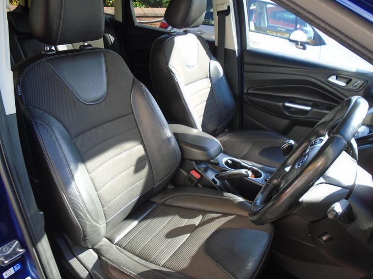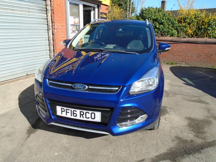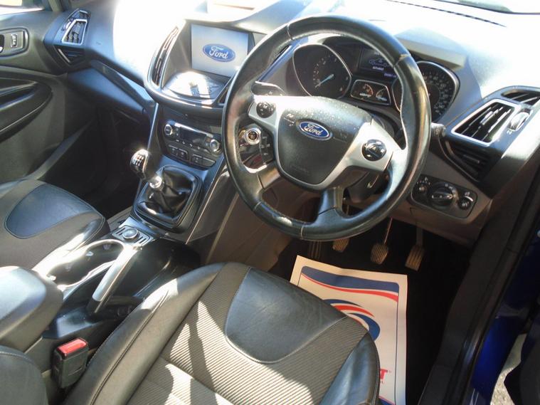 FORD KUGA 2.0 TDCI TITANIUM 2WD 5 DOOR EURO 6.METALLIC BLUE WITH CONTRASTING BLACK HALF LEATHER INTERIOR.GREAT SPEC ON THIS POPULAR SUV COMES WITH SAT NAV, BLUETOOTH CONNECTIVITY, REAR PARKING SENSORS, AIR CON, CRUISE CONTROL, USB+AUX, DAB RADIO AND 17 INCH ALLOY WHEELS AND TWO KEYS.MOT UNTIL MARCH 2027 AND FULL SERVICE HISTORY.FINANCE AVAILABLE P/X WELCOME..