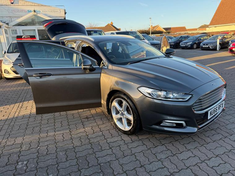 FULL SERVICE HISTORY, NEW TIMING BELT AND WATER PUMP, 6 MONTHS WARRANTY, 12 MONTHS MOT, Experian clear, 2 keys, just serviced, all prev MOT’s avail, we are located at 1-9 WALTON ROAD FRINTON ON SEA ESSEX CO13 0AA, PART EXCHANGE WELCOME, FINANCE AVAILABLE, This 2016 Ford Mondeo TDCi Titanium is presented with a full service history, including a recent service on 16th March 2026, and a Experian clear vehicle history check, offering you peace of mind. This well maintained example features a 2.0L Euro 6 diesel engine and comes with a 6 month warranty. Notable features include rear parking sensors with parking assistance, automatic headlights, and dual zone climate control with rear air conditioning for passenger comfort. The integrated Bluetooth handsfree system allows for seamless phone connectivity.The Titanium trim level ensures a comfortable and convenient driving experience. The inclusion of rear parking sensors and automatic headlights are practical highlights that make everyday driving easier. Furthermore, the advanced dual zone climate control system, complete with independent rear air conditioning, sets this Mondeo apart by offering superior comfort for all occupants. A 12 month MOT will be provided upon purchase, underscoring the vehicle's readiness for the road..