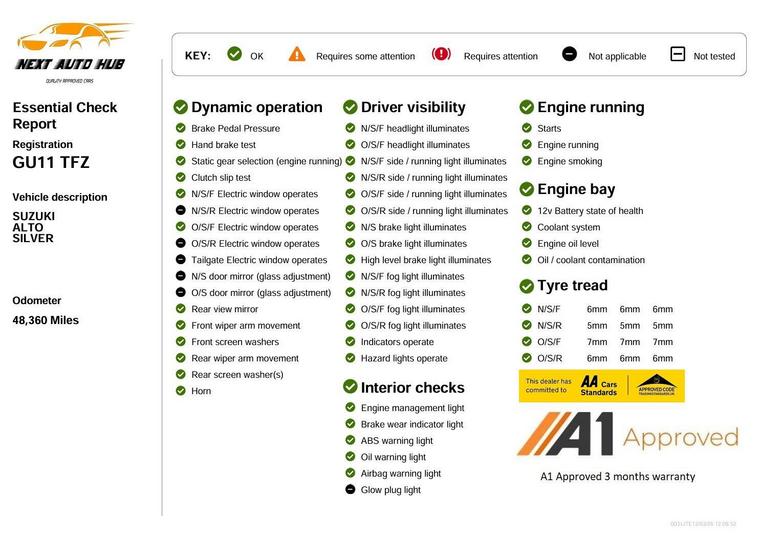 This 2011 Suzuki Alto SZ4 presents a remarkable opportunity with its exceptionally low mileage of just 48, 500 miles, a significant advantage for a vehicle of its age. Having been owned by only two previous keepers and boasting a full service history, most recently completed at 48, 395 miles on 16th March 2026, this car has been well cared for. It comes with 12 months MOT for your peace of mind and features manual air conditioning to keep you comfortable.The Suzuki Alto SZ4 is a smart choice for economical motoring. Its 1.0 litre petrol engine delivers an impressive fuel economy of 64 miles per gallon, which is considerably better than many other cars in its class. Furthermore, its low CO2 emissions and low insurance group rating mean that running costs are kept to a minimum, making it an attractive option for budget conscious drivers. A 3 month warranty is also included for added reassurance.3 Month Warranty 12 month AA Road side cover includedAA Dealer promise for quality cars and serviceWe guarantee you an absolutely clean title to the car, an outstanding maker may show up on the HPI report however this is commercial unit stocking finance which we have with our suppliers and is different to traditional consumer finance. Your invoice will confirm that this marker will be removed within 48 hours of your purchase.A complete health check is performed to ensure no surprises with the car, any test drive is welcome.At Next Auto Hub we make great effor to ensure that our cars are prepped to a high standard before these are made available for sale.Payment options:Bank Transfer (Preferred)Cash/Credit Card/Debit Card (These methods carry an additional surcharge of 1 dealer's website credit card (Visa/Mastercard and Amex) all carry a surcharge of 2.5%.