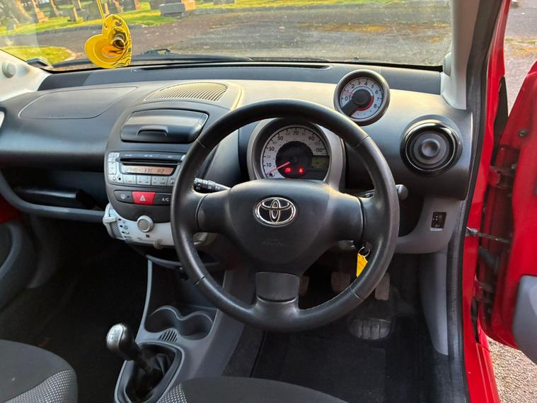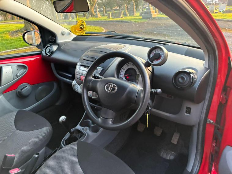 TOYOTA AYGO 1.0 VVT-I GO IN A RED EXTERIOR COLOUR WITH BLACK CLOTH INTERIOR WITH WHITE STITCHING... £20 ANNUAL ROAD TAX... COMES WITH 2 REMOTE KEYS... COMES WITH A COMPREHENSIVE SERVICE HISTORY WITH A RECENT SERVICE DONE... FEATURING PRIVACY GLASS... REAR FOG LIGHTS... TOMTOM TOUCHSCREEN NAVIGATION SYSTEM... FM CD RADIO WITH RADIO OPTIONS AND A AUX PORT... CLIMATE CONTROL WITH REAR HEATED WINDOWS... MANUAL ADJUSTABLE SIDE MIRRORS... HEADLIGHT ADJUSTMENT CONTROL... FRONT ELECTRIC WINDOWS... CUP HOLDERS... ALLOY WHEEL WITH DECENT TREAD ALL ROUND... WARRANTY INCLUDED... ALL PART EXCHANGES ARE WELCOME... OPTIONAL NATIONWIDE DELIVERY EXTRA... BOOK-INS AND VIDEO VIEWINGS ARE AVAILABLE... TEST DRIVES ARE WELCOME... FOR MORE INFORMATION CALL US TODAY ON 01616232309..