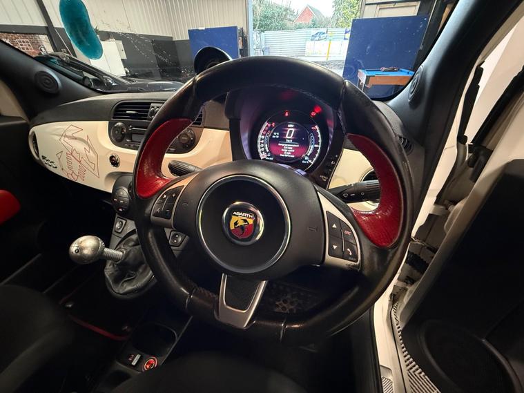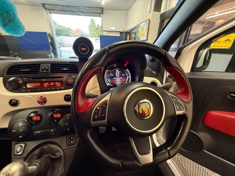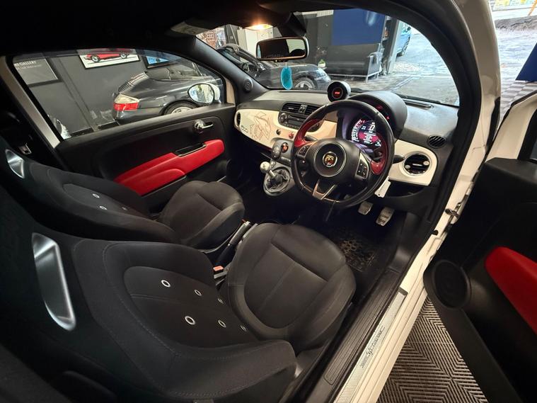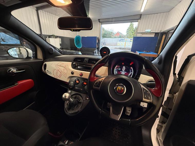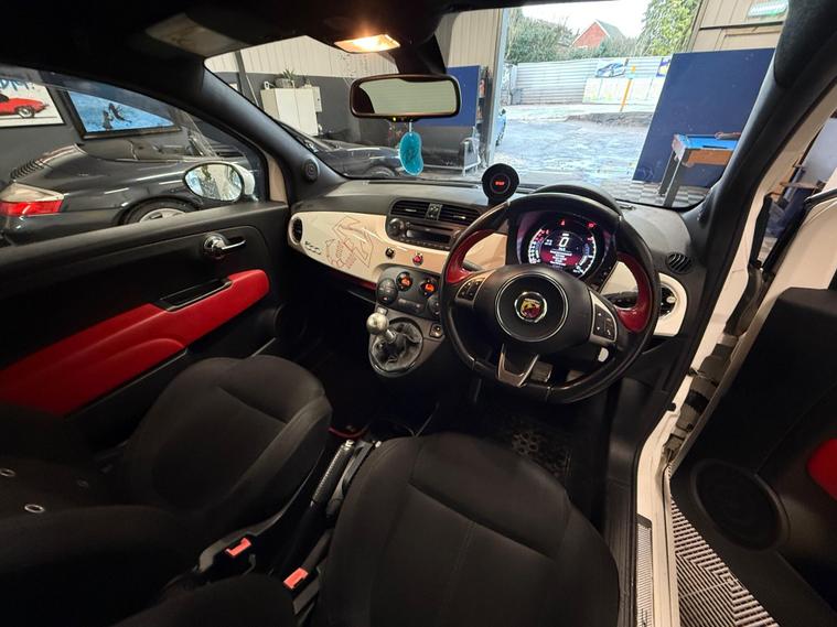 2015 (65) Abarth 595 1.4 T-Jet Turismo 3dr. Finished in white, this sporty hatchback has covered 87, 334 miles and offers a fantastic driving experience with its lively 1.4 T-Jet petrol engine and manual gearbox.The Abarth 595 Turismo is a great choice for anyone wanting a small car with real character. It offers sharp styling, a sporty exhaust note and an engaging drive, while still being compact enough for everyday use. These cars are popular for their fun factor, strong road presence and great enthusiast appeal.Specification includes:Alloy wheelsAM/FM/CD radioAir conditioningAftermarket exhaustSport styling and interior touchesService history:2016 – 3, 779 miles2019 – 24, 935 miles2020 – 36, 879 miles2020 – 50, 139 miles2021 – 62, 251 miles2022 – 74, 027 miles2024 – serviceAdditional maintenance:Cambelt and water pump replaced in 2021Auxiliary belts replaced in 2021New battery fitted in 2024Turbo pressure converter replaced in 2025Discs and pads replaced in 2025A service and MOT will be completed as part of our preparation process.A 3-month comprehensive warranty is offered, with the option to extend for up to 2 years. Part exchange is welcome for any value, and our Buying Department can provide prompt valuations. Nationwide delivery is available at a cost upon request. You can reserve this vehicle today with a £250 fully refundable deposit. We have over 150 vehicles in stock to choose from. Established in 2021, we pride ourselves on our excellent reviews and customer service, with over 200 positive reviews. All our retail vehicles are fully health-checked and prepared to the highest standard. As an AA Approved Dealer with Trading Standards endorsement, you can trust us to deliver quality and reliability. Every car comes with 12 months’ free AA roadside breakdown and recovery, regardless of age, value or mileage. We are regulated and authorised by the Financial Conduct Authority under FRN: 1014981..