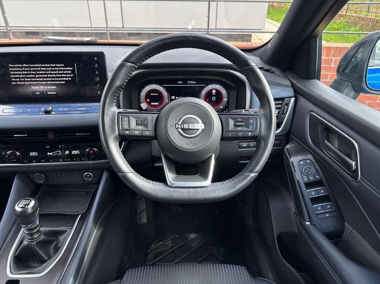 This 2023 Nissan Qashqai DIG-T Tekna presents an exceptional opportunity with its remarkably low mileage of just 17227 miles. This Euro 6 compliant 1.3L Petrol Hybrid model combines efficiency with a premium Tekna trim, offering a sophisticated driving experience. You'll appreciate the convenience of front and rear parking sensors, complete with parking assistance, and the added safety of Intelligent Blind Spot Intervention. Stay connected and entertained with wireless Apple CarPlay and Bluetooth with audio streaming, while the Heat Pack ensures comfort with heated seats and a heated steering wheel, perfect for any journey.The Qashqai DIG-T Tekna stands out with its low insurance group, making it an economical choice for many drivers. Furthermore, its generous boot space provides ample room for shopping, luggage, or equipment, highlighting its practicality for everyday life and adventures. These features collectively demonstrate how this Qashqai offers superior value and capability compared to other vehicles in its class..