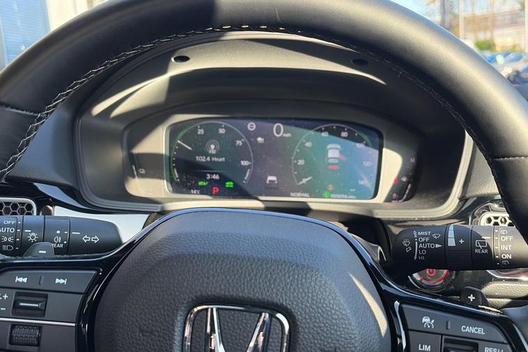 This 2025 Honda Civic h i-MMD Advance presents a superb ownership proposition, having been meticulously maintained by just one owner from new. This particular Advance trim model boasts a sophisticated 2.0 litre petrol hybrid engine, meeting Euro 6 emission standards. Inside, you'll find a spacious cabin enhanced by a panoramic glass roof with an opening sunroof, perfect for enjoying the journey. Stay connected and entertained with Honda CONNECT featuring navigation, compatible with both Android Auto and Apple CarPlay, while wireless charging keeps your devices powered up. For added convenience and safety, this Civic includes front and rear parking sensors, along with Blind Spot Information and Cross Traffic Monitor.The performance of this Honda Civic is truly impressive, achieving 0 to 62 miles per hour in a swift 8.1 seconds, demonstrating its dynamic capability. This acceleration figure highlights its advantage over many other vehicles in its class. Furthermore, the generous boot space offers excellent practicality for all your needs, making it a versatile choice for everyday life and longer trips..