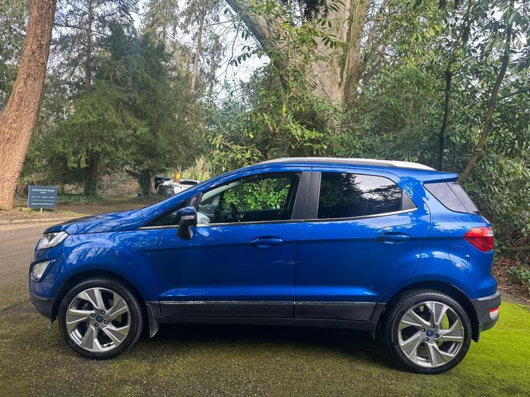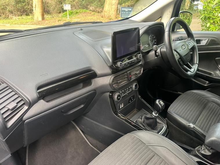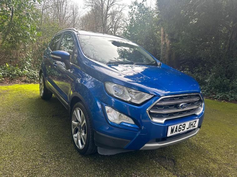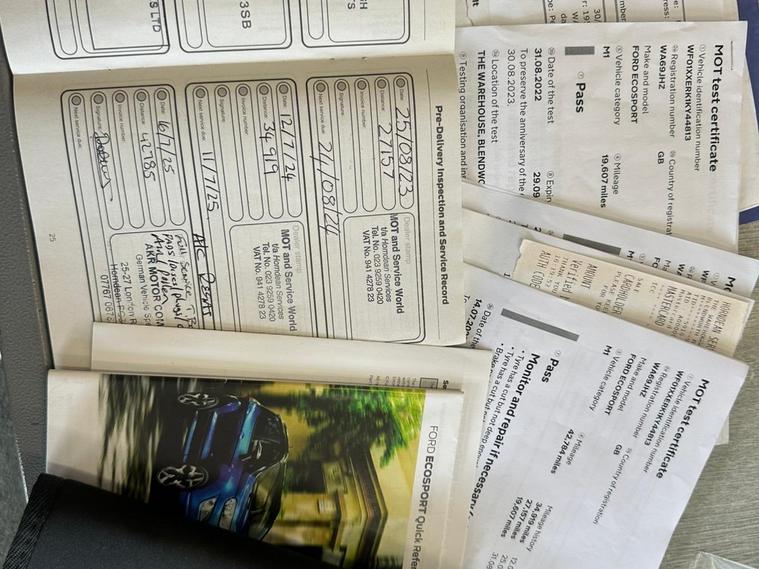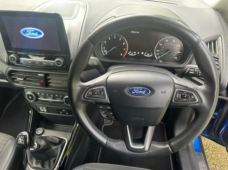 WITH FULL SERVICE INC TIMING BELT IF REQ! 12 MONTHS MOT! 12 MONTHS FREE AA BREAKDOWN COVER! AND 3 MONTHS PERSONAL PARTS AND LABOUR WARRANTY! We as a garage have been established since 1997 and from the beginning, have always worked hard to provide the best possible service to our customers. One of the key elements of this service is our 3 month personal warranty. It is supplied with the majority of our cars, free of charge and covers any faults which may occur with the car in the first 3 months of purchase! Unlike conventional warranty booklets the warranty is held with us. 2019 Ford EcoSport T Titanium offers a superb blend of style and practicality, making it an excellent choice for those seeking a reliable and well equipped compact SUV. Powered by an efficient 1.0L petrol engine and meeting Euro 6 emissions standards, this model is designed for modern driving. Inside, you'll find the advanced Ford SYNC 3 Navigation system complete with an 8 inch touchscreen, offering seamless integration with both Android Auto and Apple CarPlay. Convenience is further enhanced by automatic headlights that switch on when needed, and a rear view camera pack featuring rear sensors and a camera to aid parking. The electronic automatic temperature control ensures a comfortable cabin environment no matter the weather.With a fuel economy of 48 miles per gallon, this EcoSport demonstrates impressive efficiency, which is a significant advantage over many other vehicles in its class. Its low CO2 emissions also contribute to its appeal, suggesting a more environmentally conscious driving experience. The Titanium trim level ensures a generous specification, providing a comfortable and connected journey for all occupants..
