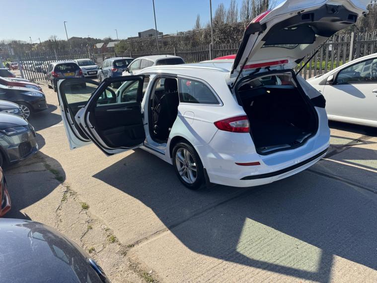 This 2015 Ford Mondeo T Titanium presents an exceptional ownership proposition with its remarkably low mileage of just 34, 879 miles, a testament to its careful single owner. This Euro 6 compliant 1.5 litre petrol model boasts a full service history, ensuring its mechanical well being, and will be supplied with a fresh 12 months MOT for your peace of mind. The Titanium trim level is further enhanced by the Titanium X Pack, which includes desirable features such as heated and memory seats, alongside keyless entry for effortless access.Experience sophisticated driving with the Mondeo's dynamic LED adaptive headlights that automatically adjust to your surroundings, providing superior illumination. Comfort is paramount, with rear air conditioning ensuring all passengers remain cool and comfortable, even on longer journeys. These carefully selected features, combined with its single owner history and minimal mileage, clearly set this Ford Mondeo apart from other vehicles of its age, offering a refined and well maintained driving experience. A 3 month warranty is also included for added reassurance..