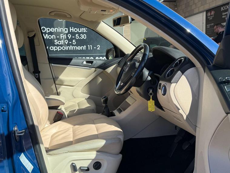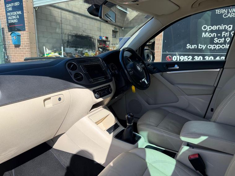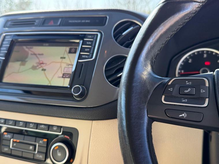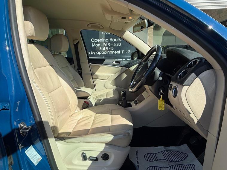 A very clean and genuine example, only 2 previous owners, same lady owner since 2019 & boasting a full service history with its last service completed on 17/02/2026 at 116, 477 miles, this 2012 Volkswagen Tiguan TDI SE presents a well maintained example. This model is equipped with a 2.0 litre diesel engine and features the smart Vienna Leather upholstery in Corn Silk, cruise control, and the RNS 315 touch screen satellite navigation and DAB radio system. For added convenience, it includes Park Assist with front and rear parking sensors, ensuring effortless manoeuvring in any parking situation. All handbooks. 2 x keys. We sell with a full annual service carried out, a new MOT & 6 Months Warrantywise Silver Warranty. 12 Months AA Breakdown Membership included. AA Driveaway 5 Day Insurance available - Only £44.99 NEED FINANCE? No Problem - SAF Registered. Hire purchase rates from 9.9% APR & PCP available, please ask. Simply click 'Apply for finance' on our website dealer's website We are a FCA registered dealership. Really is in 1st class orderThis Volkswagen Tiguan TDI SE offers excellent value, highlighted by its impressive fuel economy of 53 miles per gallon. Furthermore, its low insurance group rating and low CO2 emissions indicate that running costs are kept to a minimum, making it a more economical choice compared to similar vehicles. Current MOT to 03/09/26 but a new 12 month MOT will be provided on purchase, and the vehicle comes with a 6 month warranty for your peace of mind..