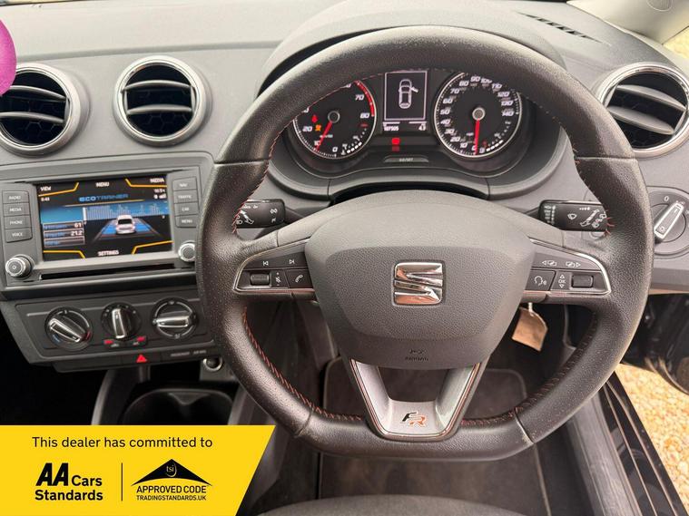 With an MOT valid until October 2026, this 2017 SEAT Ibiza TSI FR offers excellent peace of mind. This Euro 6 compliant 1.2 litre petrol model has had only two owners and comes with a 3 month warranty. Its partial service history includes a last service at 107470 miles on 14 March 2026, ensuring it has been well maintained. Notable features include Bluetooth phone connection and audio streaming, automatic headlights with a light sensor, and air conditioning, all enhanced by the convenience pack.The SEAT Ibiza TSI FR is designed for an engaging drive, accelerating from 0 to 62mph in just 9.1 seconds. This performance, combined with its comprehensive features and strong provenance, sets it apart from other vehicles in its class. It presents a compelling option for those seeking a reliable and well equipped hatchback. 1 previous ownerMot 12.10.2026Nationwide Delivery service available FREE 6-MONTHS WARRANTYPART EXCHANGE WELCOMEDALL MAJOR BANK CARDS ACCEPTED FULLY HPI CLEARFINANCE OPTIONS AVAILABLE.