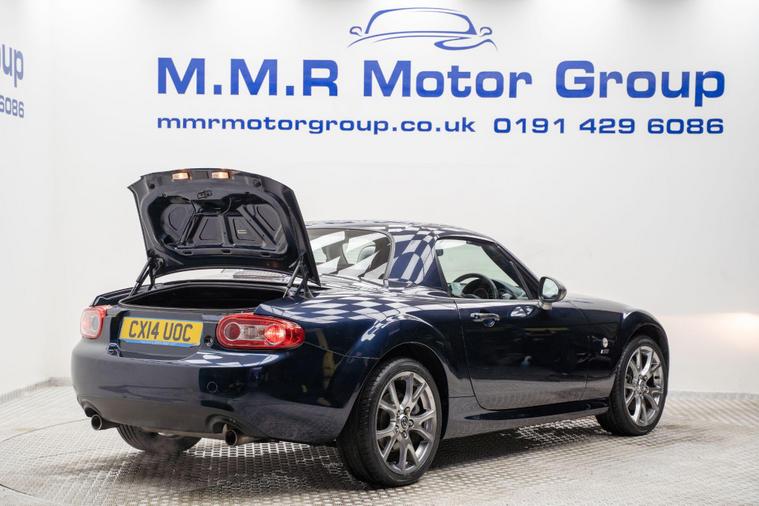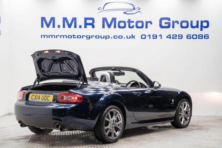 This 2014 Mazda MX-5 i Sport Venture is a truly special find, boasting exceptionally low mileage for its age at just 22, 973 miles, and a clear vehicle history check. This particular model is presented in the Sport Venture trim and is powered by a responsive 2.0 litre petrol engine. For your peace of mind, the MOT is valid until July 2026. Inside, you'll discover a comfortable cabin equipped with climate control air conditioning, front heated seats, and an integrated Bluetooth system for seamless connectivity. Navigation is made easy with the Alpine Navigation System, which also includes a branded sound system for an enjoyable audio experience.The highlights of this Mazda MX-5 i Sport Venture demonstrate its superior appeal compared to other vehicles in its class. Its very low mileage is a significant advantage, suggesting less wear and tear and potentially a longer lifespan. Furthermore, its placement in a low insurance group means that running costs are kept to a minimum, making it an economical choice for drivers. This combination of low mileage, a clear history, and desirable features makes this MX-5 a compelling proposition for anyone seeking a well maintained and enjoyable sports car..