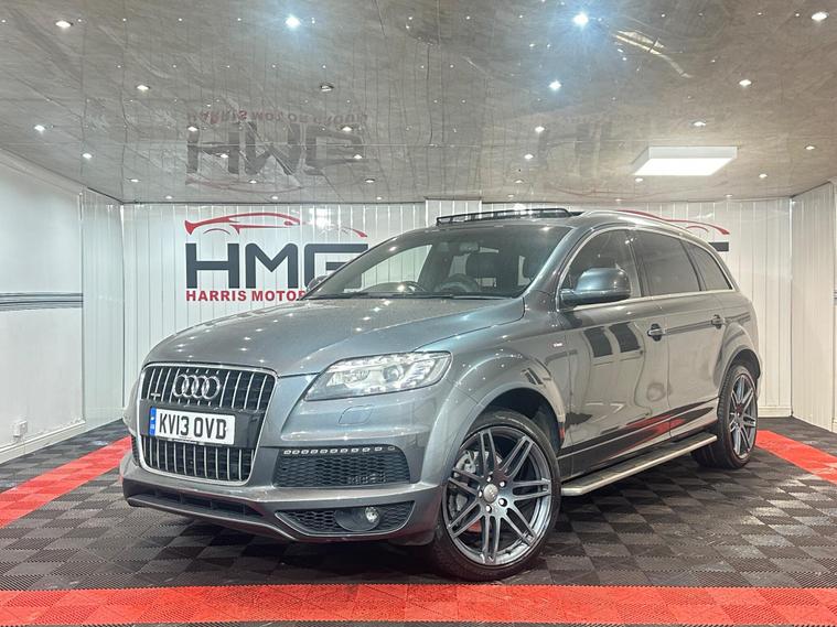 FOR MORE VEHICLES NOT LISTED ON AUTOTRADER PLEASE VISIT dealer's website DELIVERY WITHIN 40 MILES AT ADVERTISED PRICE!! NATIONWIDE DELIVERY, DRIVE AWAY INSURANCE, FINANCE AND WARRANTIES AVAILABLE ON ALL CARS! Walk around video available via whats app. Same day delivery available!! All vehicles come with an Engine service which consists of: Oil change, Oil filter, Fuel Filter, Air Filter and Cabin Filter! 2013 13 Audi Q7 3.0 TDI V6 S line Plus Tiptronic quattro Euro 5 (s/s) 5 door . Drives Flawlessly without any issues. Gearbox and engine are spot on. Hpi Clear. Will come with 12 Months Mot. 99, 786 Miles Warranted with Service history. 2 keys, Double Panoramic Tilt and Slide roof, Heated seats, Reverse Camera, Sat Nav, Alloys, Air con and much more. Read specification list below. Ring for more information. Part Exchange at TRADE price, Late viewings also available!.