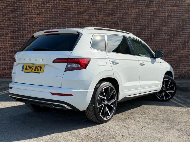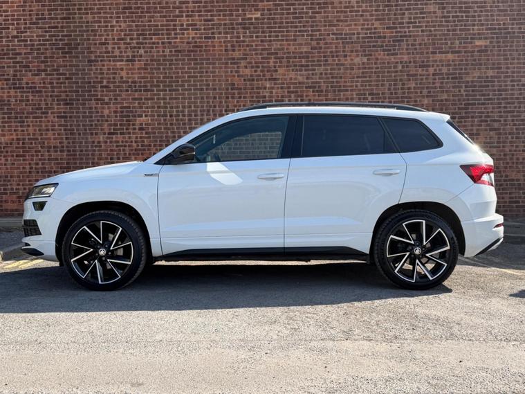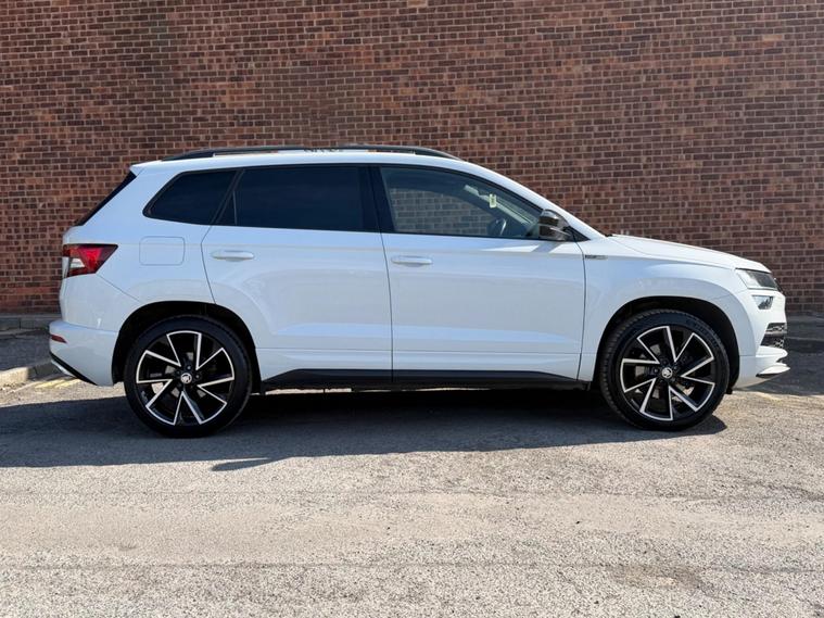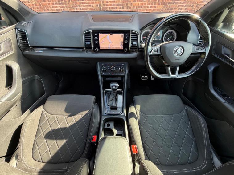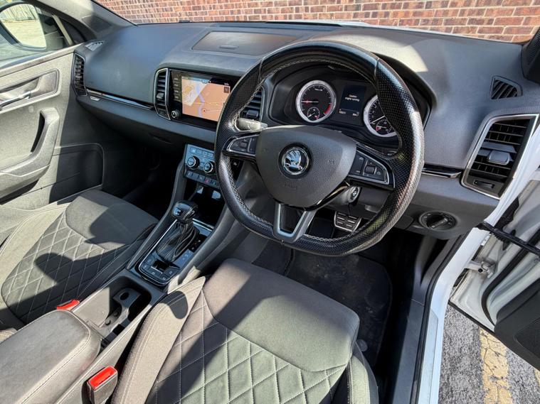 2.0 TDI SportLine presents a superb ownership proposition, having been meticulously maintained by just one owner from new. ⭐️COMES WITH 12 MONTHS AA BREAKDOWN RECOVERY 3 MONTHS WARRANTY FREE OF CHARGE AND A FRESH MOT & SERVICE FULLY HPI CLEAR AND CHECKED⭐️ This Euro 6 compliant, four wheel drive model boasts a powerful yet efficient 2.0 litre diesel engine, making it a capable companion for both daily commutes and longer journeys. The SportLine trim enhances its appeal with a suite of desirable features, including a panoramic sunroof that floods the cabin with natural light, and heated front seats for added comfort during colder months. Further enhancing the driving experience are full LED headlights with Adaptive Frontlight System and LED daytime running lights, ensuring excellent visibility. The light and rain sensor, coupled with an auto dimming rear view mirror, adds convenience, while the rear view camera simplifies parking manoeuvres. This Karoq also stands out with its exceptionally large boot space, offering ample room for luggage or shopping, and its placement in a low insurance group, indicating it is more economical to run than many comparable vehicles..