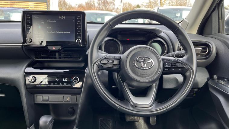 This 2023 Toyota Yaris Cross VVT-h Icon is a Toyota manufacturer approved vehicle with only one owner and a full service history, offering peace of mind. This 1.5L petrol hybrid is a Euro 6 compliant model with a low mileage of just 15447 miles for its age. It comes equipped with notable features including Intelligent Adaptive Cruise Control, automatic headlights, and a reversing camera for enhanced driving convenience. Inside, you'll find an 8in Toyota Touch 2 multimedia system with Apple CarPlay and Android Auto integration, alongside Smart Entry and Push-Button Start for effortless access and ignition.The Yaris Cross Icon stands out with its impressive fuel economy, achieving a highlight of 64 mpg, which indicates it is more economical than many similar vehicles. Furthermore, its low insurance group and low CO2 emissions highlight its cost effectiveness and environmental consideration compared to other cars in its class. This vehicle also benefits from a 12 month warranty, ensuring your ownership experience is supported..