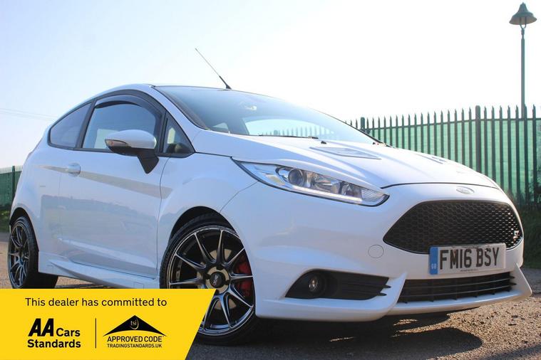 0% deposit finance available all cases considered. This 2016 Ford Fiesta ST-3 boasts a clear vehicle history and has been owned by only two careful owners. Under the bonnet, you'll find a lively 1.6L petrol engine, meeting Euro 6 emissions standards. This ST-3 model comes equipped with desirable features such as heated driver and passenger seats for those colder mornings, and Bluetooth hands free phone connectivity for safe and easy communication on the go. Keyless entry adds convenience, while the EATC electronic automatic temperature control ensures a comfortable cabin environment. Automatic headlights also provide an added layer of ease and safety.The performance of this Fiesta ST-3 is truly a highlight, with an impressive 0-62mph acceleration time of just 6.9 seconds. This brisk acceleration demonstrates how this particular model offers a more engaging driving experience compared to many other vehicles in its class. Its combination of sporty performance, practical features, and excellent provenance makes it a compelling choice for anyone seeking a dynamic and well maintained hatchback..