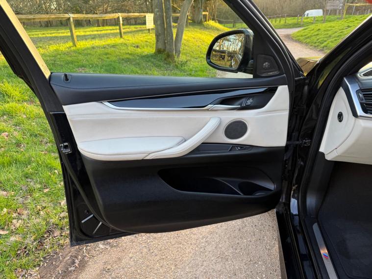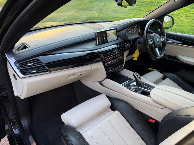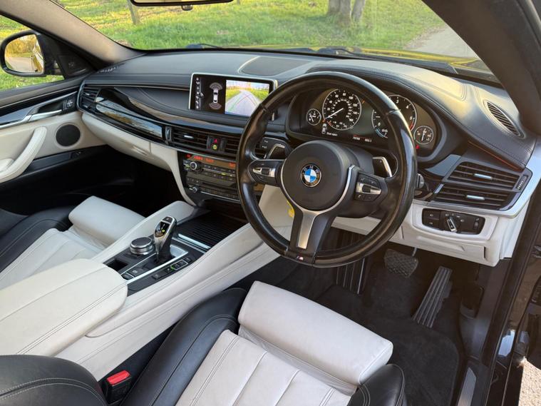 This 2016 BMW X6 40d M Sport presents a remarkable opportunity with its exceptionally low mileage of just 76, 750 miles for its age, complemented by a clear vehicle history check. This impressive Sports Activity Coupe features a powerful 3.0L Diesel engine and a Four Wheel Drive drivetrain, ensuring robust performance and capability. Its Euro 6 emission class signifies modern efficiency, while the M Sport trim enhances its dynamic appeal. Inside, you'll find the Pure Extravagance Ivory White Interior Design Package and BMW Individual Piano Black interior trim, creating a luxurious cabin. Further enhancing its style and practicality are the Black roof rails and striking 20 inch Light M Double Spoke Style 469M Jet Black alloy wheels.The BMW X6 40d M Sport offers a compelling blend of performance and practicality, highlighted by its swift 0-62mph acceleration in just 5.8 seconds, demonstrating its superior responsiveness compared to many vehicles in its class. The generous boot space provides ample room for luggage or equipment, making it a versatile choice for various needs. Additionally, its low insurance group rating offers an advantage in running costs. With a substantial towing weight of 3500 kg, this X6 is well equipped for towing duties, further setting it apart from other similar vehicles. Online Entertainment is also included, ensuring connectivity and enjoyment on every journey..