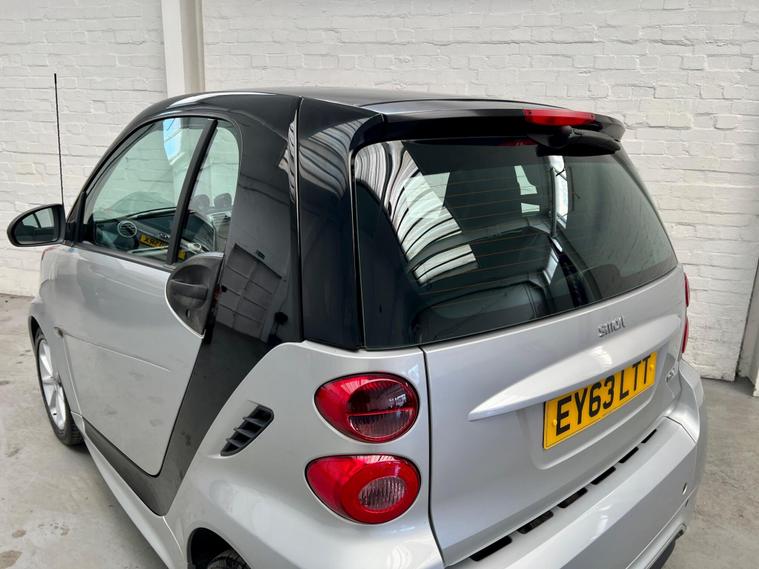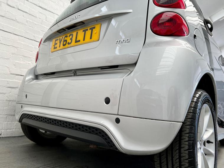 Auto+ULEZ+Only £20 Tax. This 2013 Smart Fortwo MHD Passion is presented with a clear vehicle history check, offering you peace of mind. This compact city car features a 1.0L petrol engine and comes in the Passion trim. Inside, you'll find a host of desirable features including a panoramic roof, sat nav, a Bluetooth hands free system for seamless connectivity, and air conditioning with automatic temperature control to ensure your comfort in all conditions.With an impressive fuel economy of 66 mpg, this Smart Fortwo is exceptionally efficient, and its low CO2 emissions further highlight its economical nature. These figures suggest that this vehicle offers a more cost effective and environmentally conscious driving experience compared to many other cars in its class..