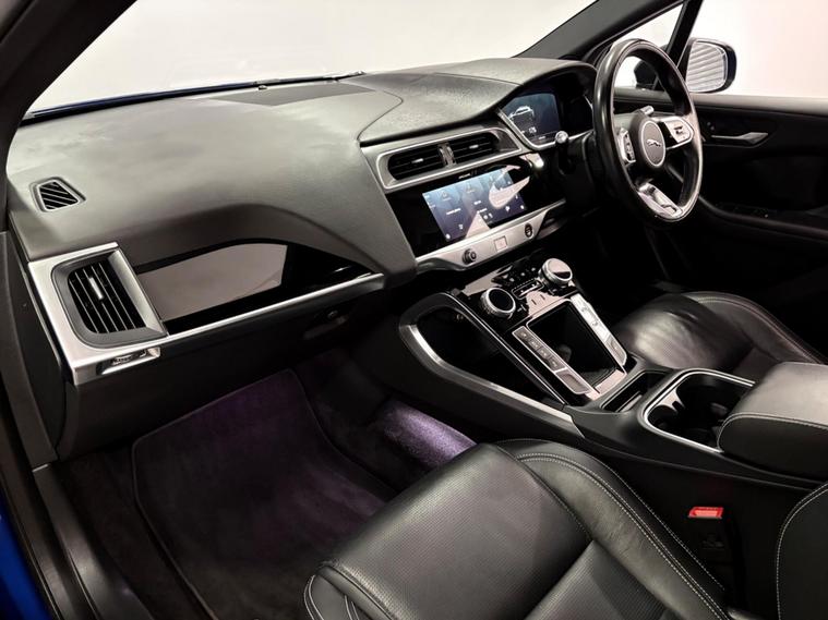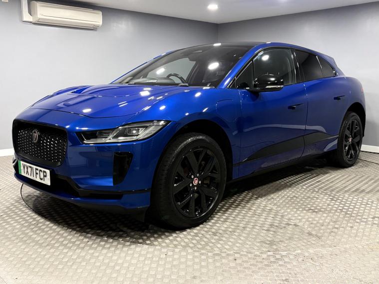One owner Jaguar I PACE EV400 Black model in caesium blue with electric memory heated front seats, Meridian speakers, navigation, Dab, bluetooth, heated front screen, climate and cruise control, 20 inch alloy wheels, fixed glass roof, heated steering wheel, keyless go, LED headlights and more. Supplied with 2 keys, MOT until October, One owner vehicle. Battery health report of 92/100.FINANCE AVAILABLE, PART EXCHANGE WELCOME. PLEASE CALL FOR A WALK ROUND VIDEO..