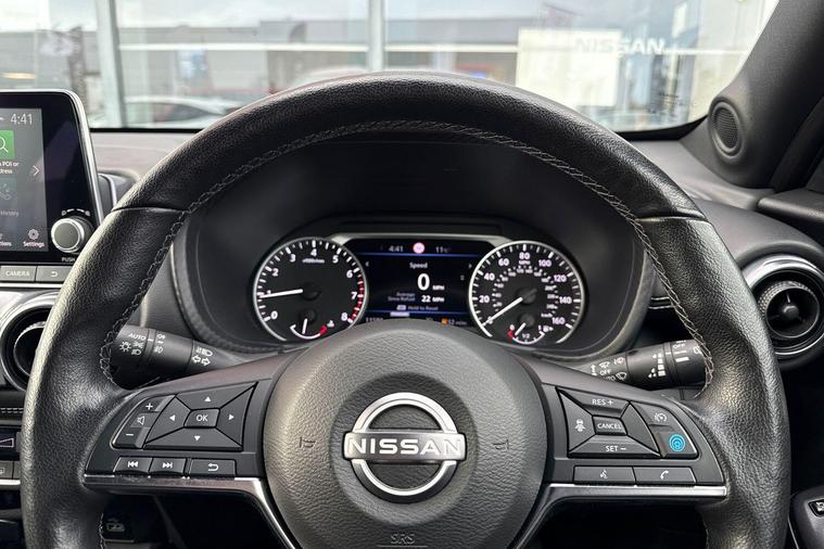 This 2023 Nissan Juke DIG-T Tekna boasts an exceptionally low mileage of just 11581 miles, making it a standout choice for discerning buyers. This one owner vehicle has been meticulously maintained with a full dealership service history, most recently serviced on 06 February 2025 at 9112 miles. As a Nissan manufacturer approved vehicle, it comes with the assurance of quality and reliability, and its MOT is valid until February 2027. The Tekna trim is powered by an efficient 1.0L Euro 6 petrol engine and features convenient keyless entry with Intelligent Key and Start Push Button, offering walk away lock and approach unlock functions.Experience seamless connectivity with Apple CarPlay and Google Android Auto integrated into this Juke, allowing you to easily access your favourite apps and navigation. The fuel economy is a notable highlight, achieving an impressive 48 miles per gallon, which indicates it is more economical than many similar vehicles. Furthermore, its low CO2 emissions demonstrate a commitment to environmental consideration, setting it apart from other cars in its class..