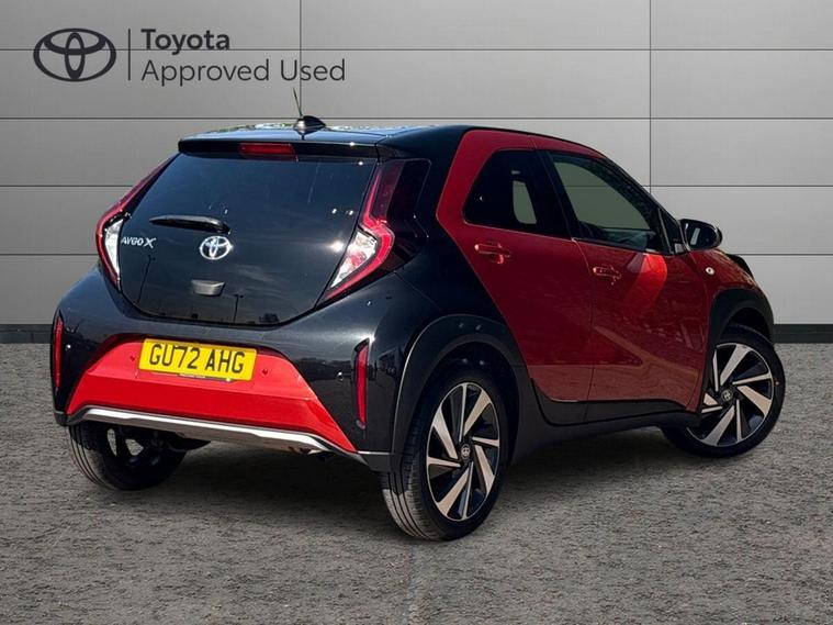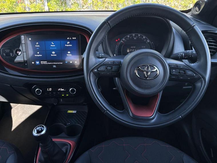 This 2022 Toyota Aygo X VVT-i Exclusive is a Toyota manufacturer approved vehicle, offering peace of mind with its 12 months warranty and MOT valid until November 2026. It boasts a full service history, with the last service completed on 2025-11-19 at 21390 miles. This stylish hatchback is powered by an efficient 1.0L Petrol Engine, meeting Euro 6 emission standards. Notable features include a JBL Premium Sound System for an enhanced audio experience, a Parking Pack with front and rear sensors, and a Reversing Camera to aid manoeuvrability. Enjoy the convenience of Smart Entry and Start with keyless entry, and effortless journeys with Intelligent Adaptive Cruise Control, all controlled from the steering wheel.The Toyota Aygo X Exclusive stands out with its impressive fuel economy, achieving a highlight of 57 mpg, which indicates it is more economical than many similar vehicles. Furthermore, its low insurance group and low CO2 emissions highlight how it is more affordable to run and more environmentally friendly compared to other cars in its class. This combination of efficiency, advanced features, and excellent provenance makes the Aygo X a compelling choice..