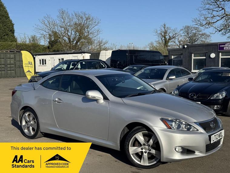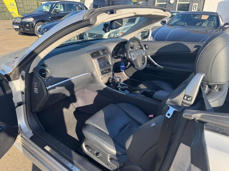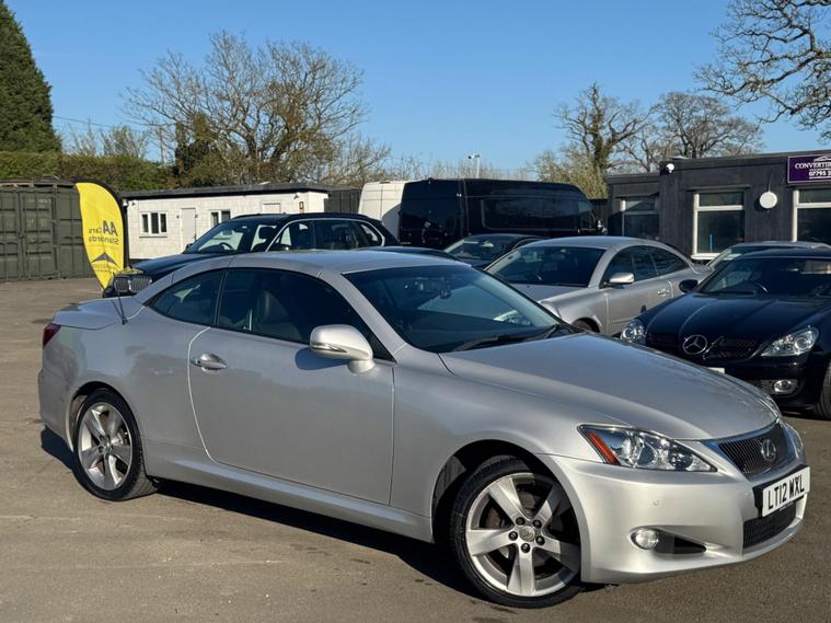 BETTER PHOTOS TOMORROW MORNING WHEN ITS NOT TO SUNNY & THE ALLOY WHEELS HAVE BEEN REFURBISHED. THIS IS A 1 ELDERY GENTLEMAN OWNER FROM NEW WITH A FULL LEXUS MAIN DEALER SERVICE HISTORY 12 MAIN DEALER SERVICES ONLY DONE 150 MILES SINCE THE LAST SERVICE & THIS Lexus IS 250 2.5 V6 ADVANCE AUTOMATIC ULEX COMPLIANT 2dr LOOKS AMAZING IN THE BEST COLOUR SILVER METALLIC CONTRASTING EBONY FULL LEATHER ELECTRIC LEATHER HEATED COMFORT SEATS AND INTERIOR AND BLACK PIANO WOOD TRIM TO THE DASH AND DOOR CARDS YES VERY SMART. THE LAST LOCAL ONE OWNER HAS LOVED AND CHERISHED THE POWER ROOF CONVERTIBLE FOR OVER 14 YEARS & YOU CAN TELL THAT BY THE SUPERB CONDITION THE IS IN YES AND IT'S REALLY GOOD MILEAGE FOR THE YEAR 91K WITH A FULL LEXUS MAIN DEALER SERVICE HISTORY THE CONVERTIBLE HAS FACTORY POWER CONVERTIBLE ROOF, CRUISE CONTROL, FACTORY TOUCH SCREEN COLOUR SAT NAV, BLUETOOTH TELEPHONE CONNECTION, STEREO RADIO/CD-PLAYER, F RONT AND REAR PARKING SENSORS, WITH REVERSING CAMERA, REMOTE CONTROL CENTRAL LOCKING SYSTEM, 18 INCH GREY ALLOY WHEELS WITH GOOD TYRES. THERE ARE TWO SETS OF KEYS & ALL THE BOOKS AND MANUALS. Boasting a single owner from new and a full dealership service history, this 2012 Lexus IS 250 Advance presents a compelling proposition. This 2.5 litre petrol model comes with a clear vehicle history check and will be supplied with 12 months MOT for your peace of mind. Its Advance trim level includes desirable features such as DAB radio, air conditioning, smart keyless entry with push start, and parking assistance sensors for both the front and rear. The last service was completed on 19th December 2025 at 91, 642 miles, and a 3 month warranty is included. This Lexus IS 250 Advance stands out with its low insurance group, making it an economical choice for many drivers. The combination of its single owner, comprehensive service record, and the inclusion of a 12 month MOT and a 3 month warranty all indicate that this vehicle has been exceptionally well cared for, setting it apart from other similar models on the market..