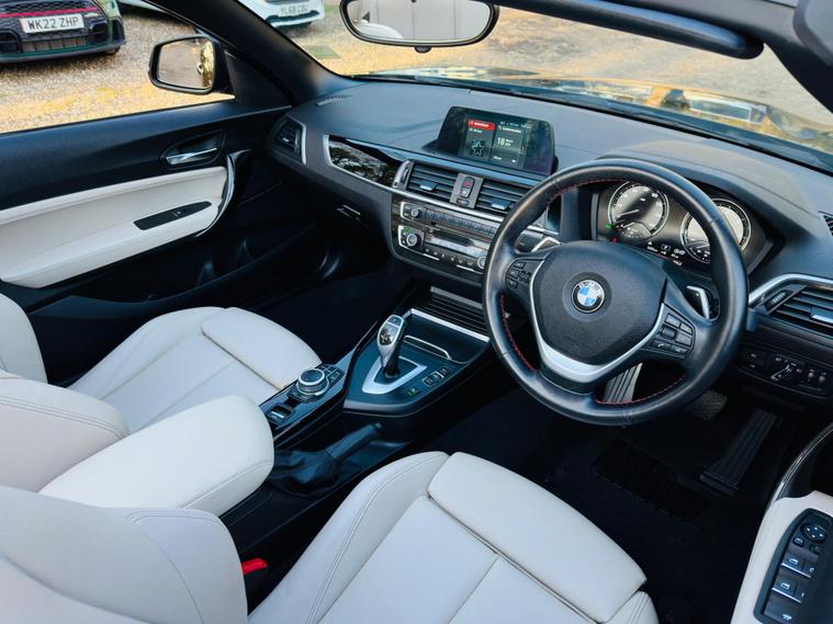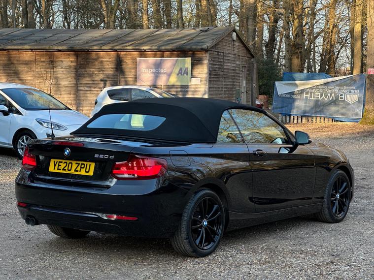 mpressive BMW 2 Series 220d Sport Convertible Auto finished in sleek Black with a stunning Oyster Dakota Leather interior – a rare and highly desirable colour combination that gives this car a real premium feel.Powered by the refined 2.0 diesel engine producing 190ps and paired with a smooth automatic gearbox, this car delivers effortless performance alongside excellent fuel efficiency. Euro 6 and ULEZ compliant, making it perfectly suited for both city and long-distance driving.This example benefits from a strong specification including Tech Pack I, Comfort Pack I, Cruise Control with Brake Function, Wind Deflector and upgraded Dakota Leather interior with Dark Oyster highlights. The electric convertible roof operates seamlessly, allowing you to enjoy open-top driving at the touch of a button.Having covered just 40, 099 miles, this vehicle presents very well and drives exactly as it should – smooth, responsive and refined throughout. A well-maintained example that reflects the quality expected from BMW.This is not your average 2 Series – the combination of specification, colour and condition makes it stand out from others currently on the market. Ideal for someone looking for a stylish convertible with comfort, performance and everyday usability.Supplied with warranty for complete peace of mind. Competitive finance options available with tailored packages to suit your needs. Part exchange welcome.All vehicles are HPI clear and prepared to a high standard.? Viewings by appointment? Contact us today to arrange a viewing or secure this vehicleDelivery AvailableA fantastic opportunity to own a well-specified, eye-catching BMW convertible – first to see will appreciate the quality on offer..