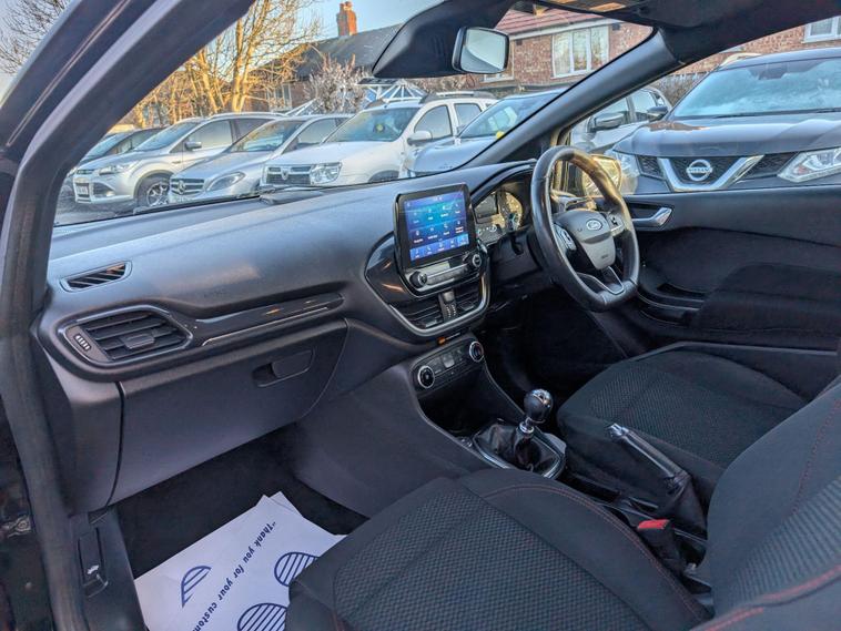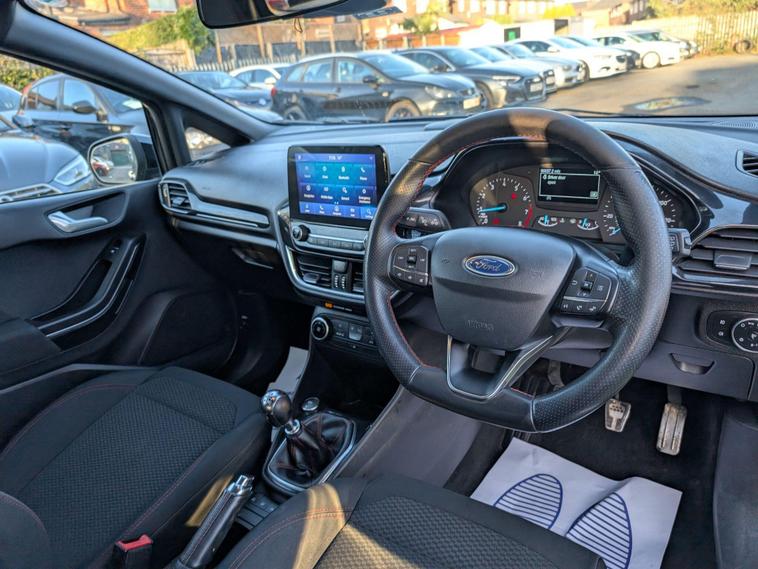 Superb Condition | Service HistoryCLICK & COLLECT AVAILABLE – Includes Fresh Service, MOT, and WarrantyFinance Available – Starting from 9.9% APRWe are delighted to offer this fantastic example of this FORD FIESTA ST-LINE with grey sport ST alloy wheels. -Leather steering wheel with audio and cruise controls.-Fantastic cloth upholstery with red stitching.-Centre console touchscreen with DAB, bluetooth and CARPLAY radio and SATNAV-USB and AUX. -✅ Mechanical Inspection Report Included✅ Minimum 6 Months MOT✅ Warranty Included✅ HPI Clear✅ Fully Valeted✅ Engine & Gearbox Fully Inspected by On-Site MechanicsWhy Buy from Liv Motors?We’re a family-run business with a friendly, experienced team of customer service advisors and qualified mechanics on-site. When you purchase from us, you’re not just buying a car – you’re investing in peace of mind.We Offer:? Car Finance Options? Part Exchange Welcome?️ Service Plans Available?️ Comprehensive WarrantyTest Drives Available | Contact Us Anytime with Your Queries – We’re Here 24/7!? Direct Line: 01616232975? Address: Liv Motors, Poppythorn Lane, Prestwich, Manchester, M25 3BS? Opening Hours: 9:00 AM – 6:00 PM Daily? After 6 PM – Appointments Only.