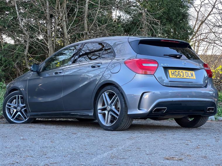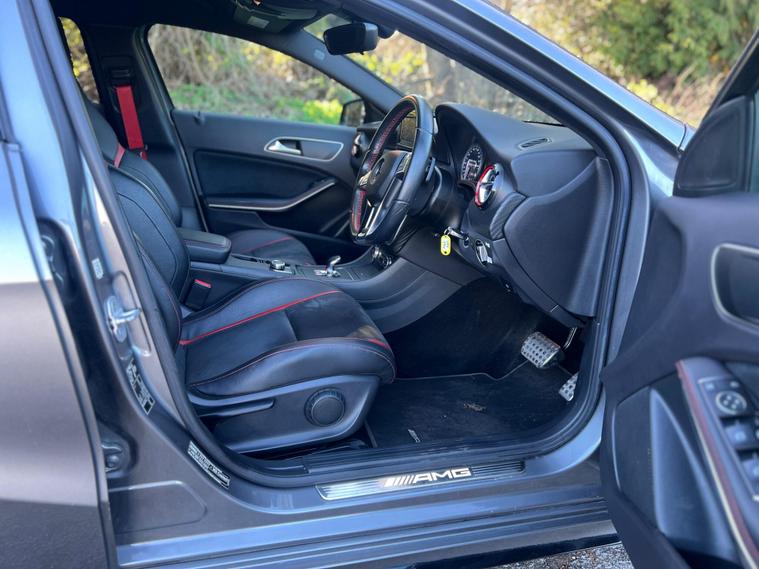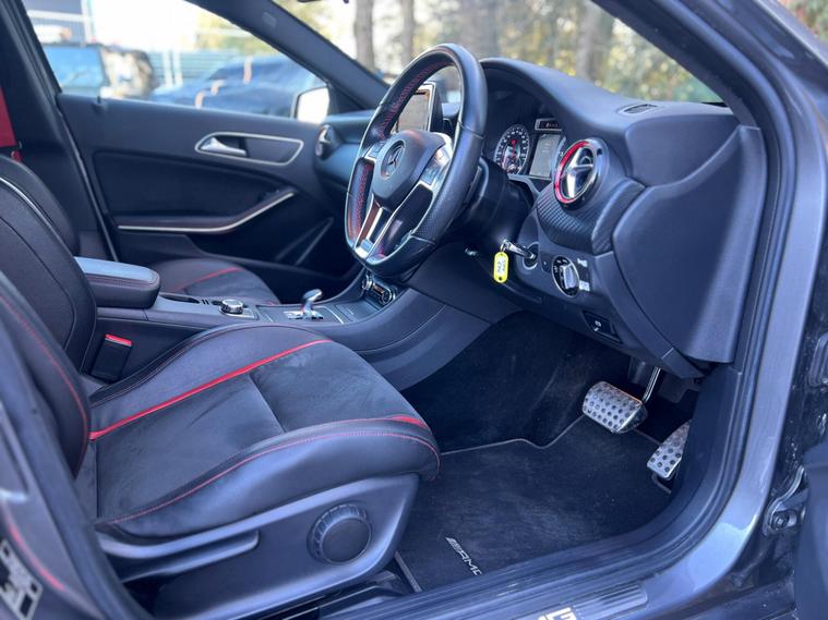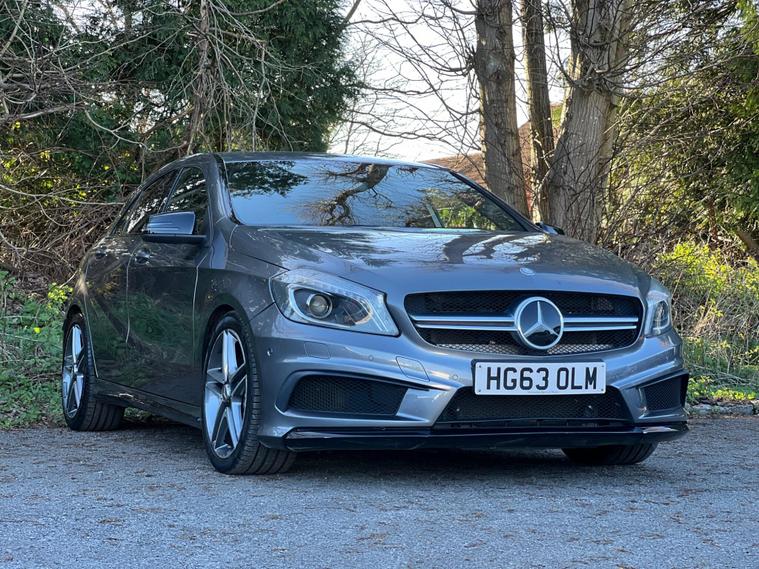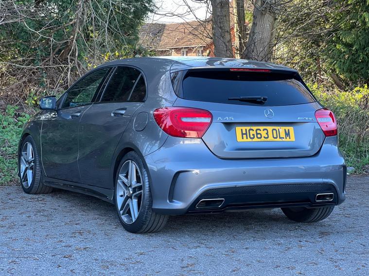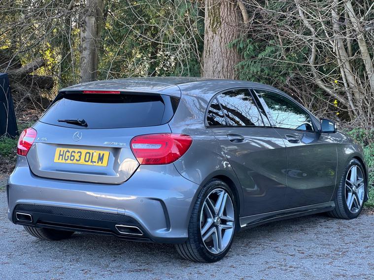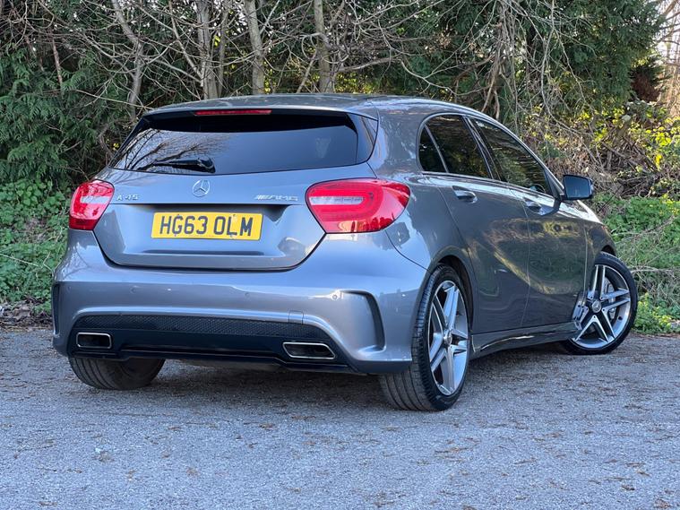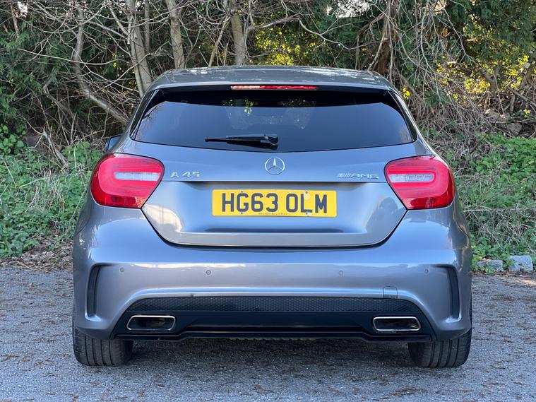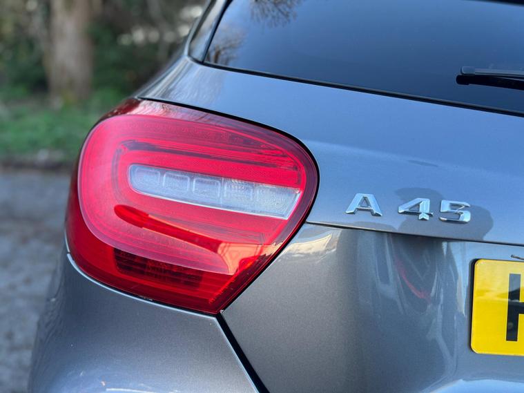 This 2014 Mercedes Benz A45 AMG boasts exceptionally low mileage for its age, having covered just 49, 000 miles, and has been cared for by only two owners. This premium hatchback features a powerful 2.0 litre petrol engine paired with a four wheel drive system, ensuring dynamic performance. It meets Euro 6 emissions standards and comes equipped with a Bluetooth interface for seamless connectivity, front and rear parking sensors to aid manoeuvrability, and luxury automatic climate control for a comfortable cabin environment.The A45 AMG truly stands out with its impressive acceleration, achieving 0-62mph in a remarkable 4.6 seconds, a testament to its performance capabilities. This rapid acceleration, combined with its four wheel drive system, places it ahead of many other vehicles in its class. Furthermore, the generous boot space offers practicality for everyday use, making this Mercedes Benz A Class a compelling choice for those seeking both exhilarating performance and everyday usability..