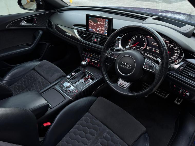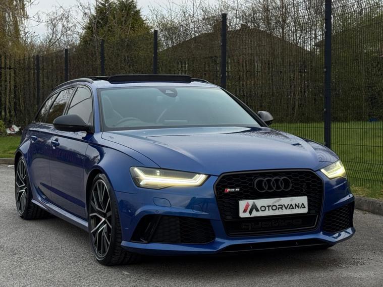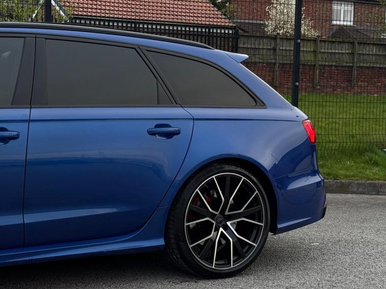 This Audi RS6 Avant 4.0 TFSI V8 Performance Finished in Sepang Blue and this vehicle comes with the following specification: 21in Alloy Wheels - 5-V-Spoke Star Design Titanium-Look | Leather-Alcantara RS Embossed - Super Sports Seats - Black | Panoramic Glass Sunroof | Head-Up Display | Dynamic Steering | Inlays - Carbon | Audi Hands-Free Boot Opening System with Advanced Key | Heated Front & Rear Seats | Gloss Black Styling Package | Audi Connect with Audi Phone Box | Parking Pack | Audi Drive Select | Audi Hill Hold Assist | Audi Matrix LED Headlights | BOSE Surround Sound System | Keyless Go | MMI Navigation Plus including MMI Touch | Navigation | Bluetooth Audio & Connectivity | Reverse Camera | Heated Steering |.