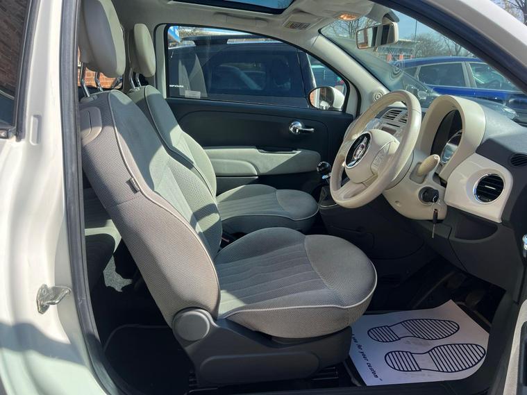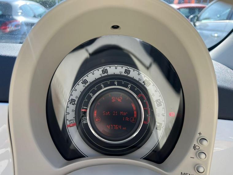 ***READY TO DRIVE AWAY***This 2014 Fiat 500 Lounge boasts exceptionally low mileage for its age, having covered just 47, 000 miles. This particular example is a Euro 6 compliant 1.2L petrol model, presented in the desirable Lounge trim. It comes with a comprehensive full service history, with the last service completed on 25th March 2026, and its MOT is valid until March 2027, offering peace of mind. You can also benefit from a 3 month warranty for added security.The Fiat 500 Lounge is equipped with a Blue&Me hands free system featuring a USB port and Bluetooth connectivity, allowing for seamless integration of your devices. Comfort is assured with air conditioning, and the fixed glass roof with a sunblind adds a touch of open air feel to your journeys. This vehicle stands out with its impressive fuel economy of 59 mpg, low CO2 emissions, and a low insurance group, all of which indicate it is more economical to run than many similar vehicles..