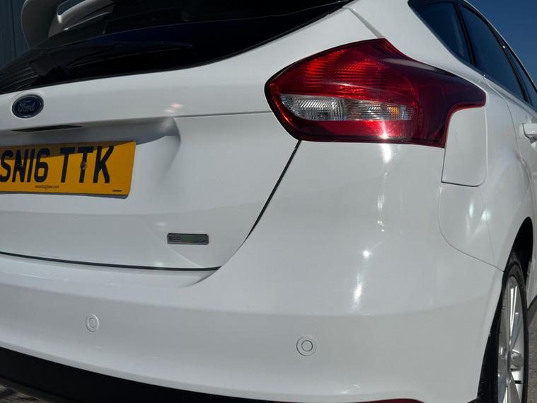 This 2016 Ford Focus TDCi Titanium is presented with a full 12 months MOT for your peace of mind. This well equipped Focus features a 1.5L Euro 6 diesel engine and comes with a 3 month warranty for added security. Inside, you will find dual zone climate control for personalised comfort, automatic headlights that adjust to lighting conditions, and a Bluetooth handsfree system for safe and easy communication on the go. Parking is made simpler with rear parking sensors and assistance.This Focus TDCi Titanium offers impressive efficiency, achieving an outstanding 74 miles per gallon, which is significantly better than many other vehicles in its class. Its low CO2 emissions also contribute to its economical running costs. Furthermore, you will appreciate the generous boot space, making it a practical choice for families or those who need ample room for luggage or shopping..