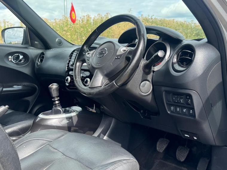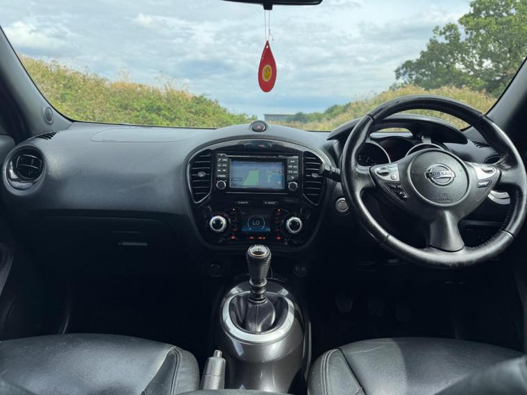 Discover this 2017 Nissan Juke DIG-T Tekna, a stylish and well equipped compact SUV. This particular model boasts a Euro 6 compliant 1.2 litre petrol engine, offering an impressive fuel economy of up to 50 miles per gallon. Inside, you'll find premium black leather upholstery complemented by a black centre console, creating a sophisticated cabin. The Tekna trim level ensures a host of desirable features, including heated front seats for those colder mornings, and a comprehensive safety pack that incorporates Blind Spot Assistance and a 360 degree camera for enhanced awareness and easier parking. Stay connected on the go with seamless Bluetooth integration for your telephone, and benefit from the convenience of a colour reversing camera.This Nissan Juke stands out with its attractive running costs, highlighted by its low CO2 emissions and placement in a low insurance group, indicating it is more economical to own and run than many similar vehicles. The combination of its efficient 1.2L DIG-T engine and the Tekna specification makes this Juke a practical and appealing choice for drivers seeking a blend of style, technology, and cost effectiveness..