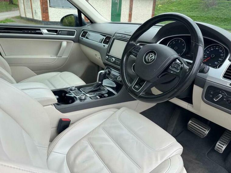 This Volkswagen Touareg is a great example of a high spec, low miles and 3 owner vehicle. The colour of the vehicle is Blue (dark) with cream interior to finish off! Comes with a full service history. And the latest one is at the current miles advertised as we service all of our vehicles during prep! We will also provide a fresh MOT with this vehicle.This Touareg has a Ghost immobiliser worth £700 fitted, electric tow bar, rear heated seats, pan roof and a separate remote to heat the vehicle without starting it! We offer finance via Close Brothers Motor finance at competitive rates. This vehicle comes with a minimum 3 months warranty for your peace of mind..