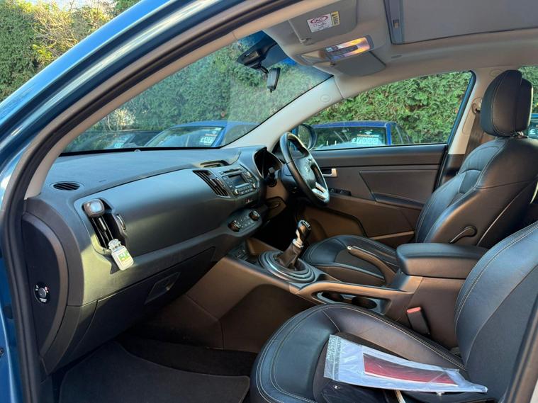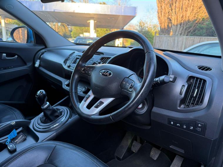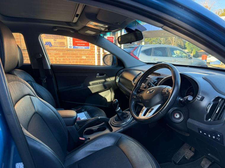 **Kia Sportage 1.6 GDi EcoDynamics 2 2WD Euro 5 (s/s) 5dr****Registration:** AK63USY**Year:** 2013 (63)**Mileage:** 80, 650 miles**Fuel:** Petrol**Transmission:** Manual**Colour:** Blue**Owners:** 3 Owners**ULEZ:** Compliant**Price:** £4, 895---**Vehicle details:**• 80, 650 miles – low mileage for its age• 3 owners from new• Full dealership service history• Last serviced at 75, 306 miles• MOT valid until December 2026• Clear vehicle history check• Reliable 1.6L petrol engine• Low insurance group – economical to insure• Spacious and practical SUV• **3 MONTHS AA WARRANTY AND 12 MONTHS AA BREAKDOWN COVER**---**Features and equipment:**• ‘2’ specification• Panoramic sunroof with electric opening• Rear parking sensors• Dual zone climate control• Bluetooth connectivity with music streaming• Multifunction steering wheel• Air conditioning• Electric windows• Electric mirrors• Alloy wheels• Large boot space – ideal for families---A **well maintained Kia Sportage** with full dealership history, great specification and excellent practicality. Ideal for families or anyone looking for a **reliable and spacious SUV with low running costs**.---**WE DO PART EXCHANGE****WE ALSO BUY CARS – BEST QUOTATIONS OFFERED****For more available cars:* dealer's website / Call:** 01223964083**Location:** CB24 9LQ**.