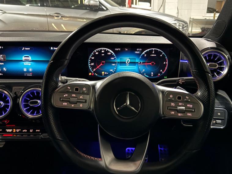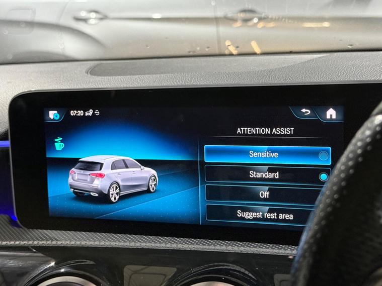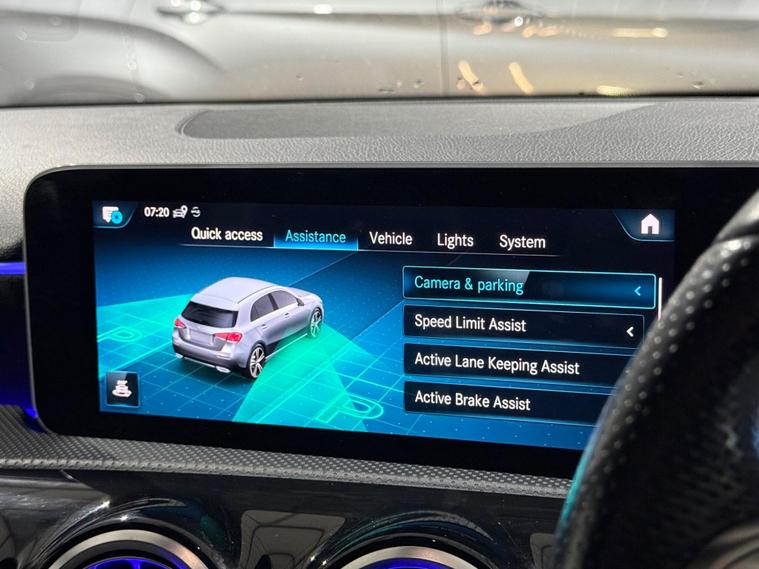 This 2018 Mercedes Benz A Class A180d AMG Line (Premium Plus) boasts exceptionally low mileage for its age, having covered just 56, 000 miles. This Euro 6 compliant model features a 1.5 litre diesel engine and comes in the sporty AMG Line trim. The Premium Plus Package enhances the driving experience significantly, including LED High Performance Headlamps with integrated daytime running lights, Keyless Entry for effortless access, and a panoramic opening sunroof. Inside, you'll find heated front seats with memory function for the driver, and the THERMOTRONIC luxury automatic climate control ensures a comfortable cabin temperature. Connectivity is also a strong point with a dual Bluetooth interface and two USB Type C ports.The A180d AMG Line (Premium Plus) offers a refined and practical ownership proposition. Parking is made simpler with front and rear parking sensors, complemented by a 180 degree reversing camera with guidelines. This vehicle also provides generous boot space, making it a versatile choice for everyday needs and longer journeys. The combination of its premium features, low mileage, and efficient diesel engine sets this Mercedes Benz A Class apart from others in its class..