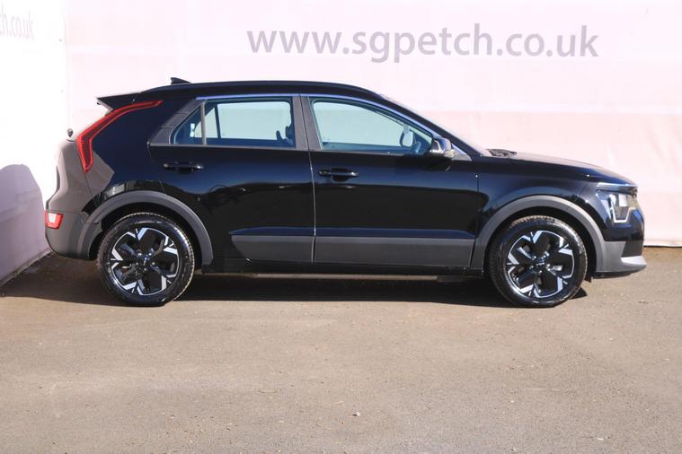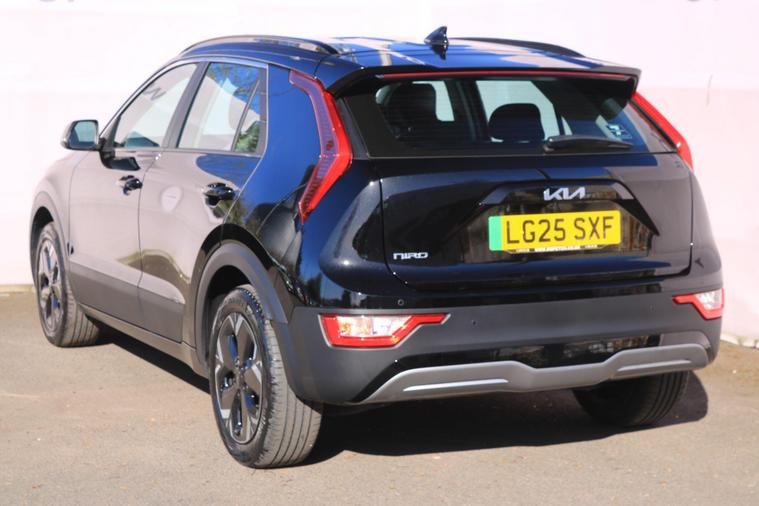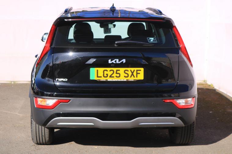 This 2025 Kia Niro 2 is a remarkable example, boasting a single owner from new and Kia manufacturer approval, ensuring peace of mind. This all electric model features a substantial 68 kWh battery, offering an impressive maximum range of 285 miles when new. Recharging is convenient, with a full charge at home taking approximately 9 hours and 25 minutes using a 7kW charger, while rapid public charging can take you from empty to 80% in just 43 minutes. The vehicle also benefits from an extensive 84 month warranty, underscoring Kia's commitment to quality.The Kia Niro 2 is designed for practicality and ease of use. Its large boot space provides ample room for shopping or luggage, making it a versatile choice for everyday life. Notable features include a reversing camera system integrated into the touchscreen with dynamic guidelines, rear parking sensors, and a smart entry system with a start stop button for keyless entry. Automatic headlights and dual zone climate control with air conditioning further enhance the driving experience, offering comfort and convenience that sets this Niro apart..