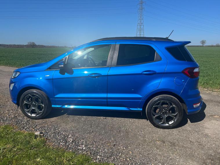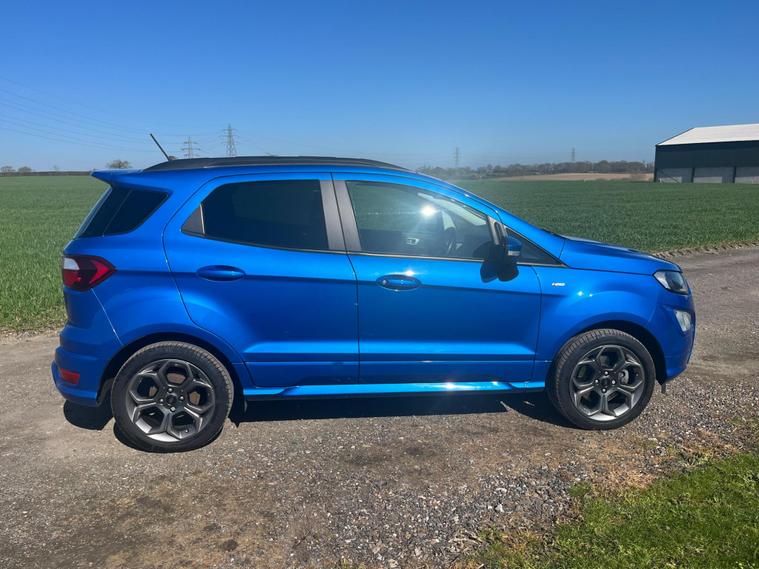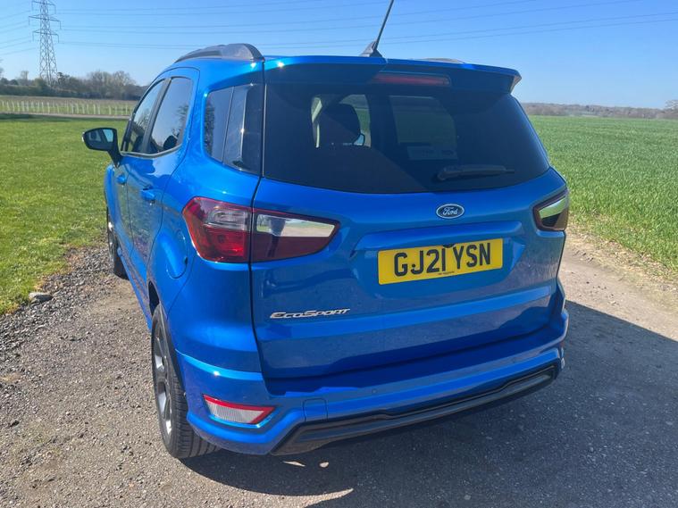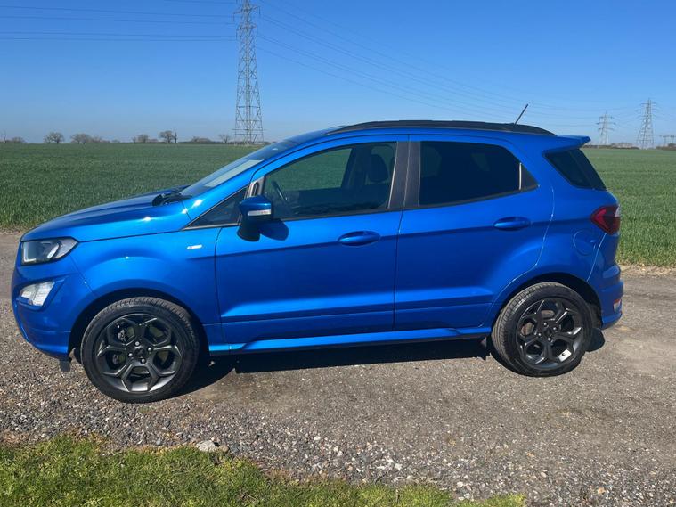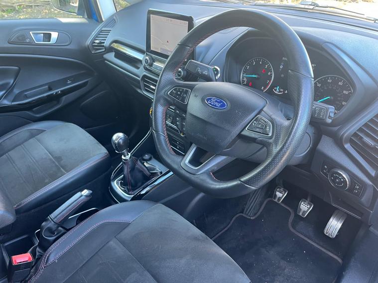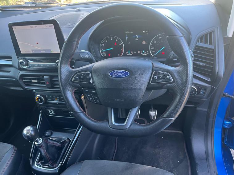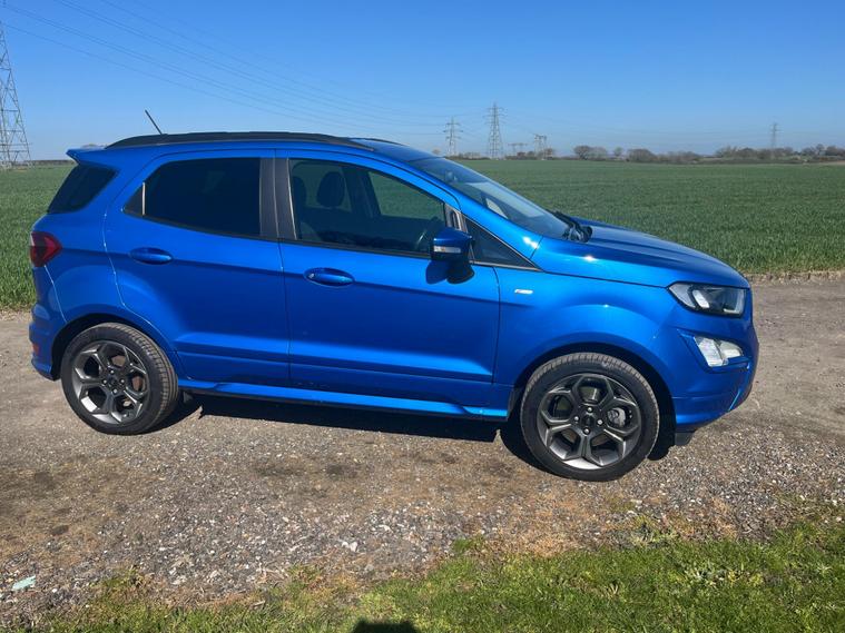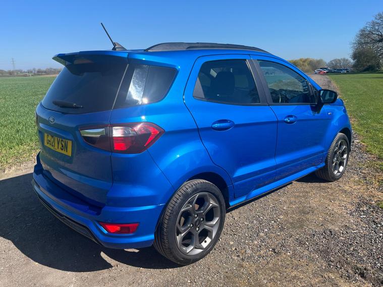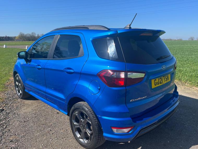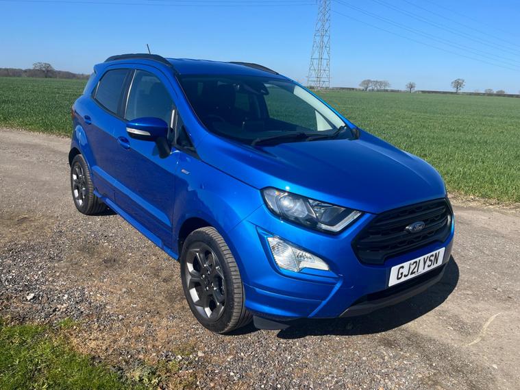 Boasting a full service history and an MOT valid until February 2027, this 2021 Ford EcoSport T ST-Line presents a well maintained example. Powered by a 1.0L Euro 6 petrol engine, this ST-Line trim vehicle has a clear vehicle history check and benefits from a 3 month warranty for added peace of mind. Notable features include the X-Pack, which adds keyless entry and a premium branded sound system, alongside electronic automatic temperature control for the air conditioning. The Ford SYNC 3 navigation system with an 8in touchscreen is compatible with Android Auto and Apple CarPlay, while the rear view camera pack provides a rear camera and parking sensors to aid manoeuvring. Automatic headlights further enhance convenience.This Ford EcoSport achieves an impressive fuel economy of 46 mpg, indicating its efficiency compared to similar vehicles. Its low CO2 emissions also contribute to its economical running costs. The last service was completed at 50, 600 miles on 18th February 2026, ensuring it is up to date with its maintenance.Please call 01245482565 for further detailsAppointment only.