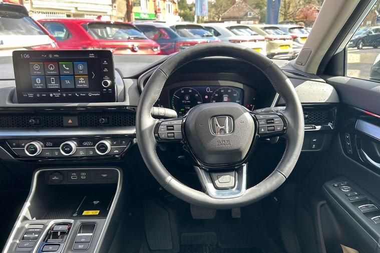 This 2025 Honda CR-V h i-MMD Advance presents an exceptional opportunity with its remarkably low mileage of just 4020 miles, making it practically new for its age. As a Honda manufacturer approved vehicle, you can be assured of its quality and reliability. This Advance trim model features a sophisticated 2.0L petrol hybrid engine paired with a Four Wheel Drive drivetrain, all meeting the Euro 6 emission class. Notable features include a helpful Head Up Display, convenient Wireless Charging for your devices, bright LED Headlights for improved visibility, and seamless Wireless Apple CarPlay integration, ensuring you stay connected and informed on every journey.The spacious boot offers ample room for all your luggage, shopping, or equipment, highlighting the CR-V's practicality for everyday life and adventures. The combination of its advanced hybrid technology, Four Wheel Drive capability, and the suite of modern features like the Head Up Display and LED Headlights sets this CR-V Advance apart from other vehicles in its class, offering a refined and efficient driving experience. This Honda CR-V is designed to provide comfort, efficiency, and a premium feel, making it an outstanding choice for discerning drivers..