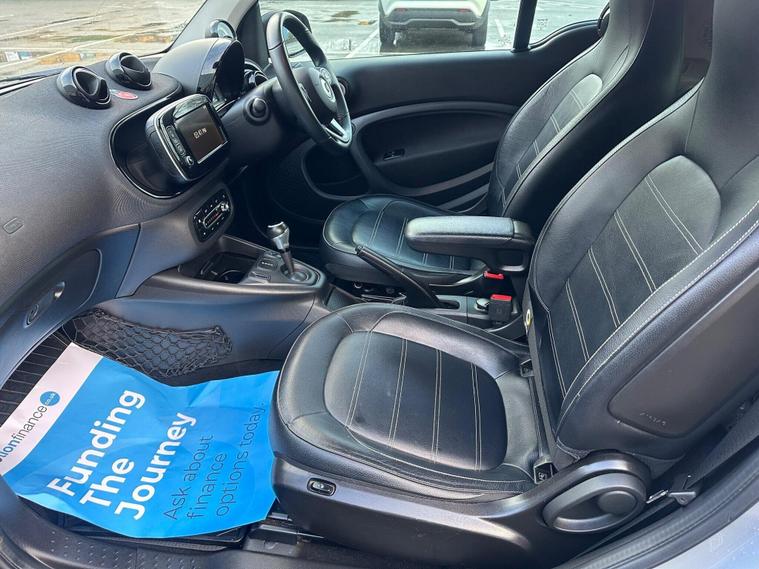 This 2020 Smart Fortwo Edition 1 is a clear example of well-maintained electric motoring. This electric vehicle boasts an 18 kWh battery offering a maximum range of 74 miles when new. Charging is convenient, with a full charge at home using a 7kW charger taking just 3 hours and 46 minutes. The vehicle history check is clear, providing peace of mind for its next owner. Notable features include a Rain Light Sensor for automatic headlight activation, a Panoramic Roof with Sun Protection for an airy cabin, and Automatic Climate Control to maintain your preferred temperature. Parking is made easier with Rear Parking Aid, including an acoustic warning and a reversing camera, all managed through the Smart Media System, which supports Android Auto and Bluetooth connectivity.The Smart Fortwo Edition 1 offers a refined driving experience with its electric powertrain. The inclusion of features like the automatic headlights and climate control demonstrates a higher level of specification compared to other vehicles in its class. The panoramic roof enhances the sense of space, while the advanced parking assistance system, complete with a reversing camera, sets it apart by simplifying manoeuvring in tight spaces. This Edition 1 trim level ensures you benefit from a comprehensive suite of technology and comfort features, making it a compelling choice for urban driving..