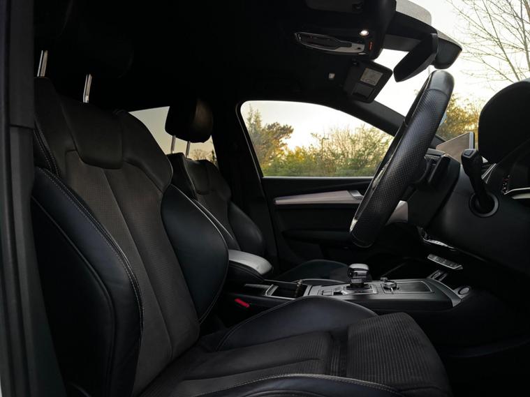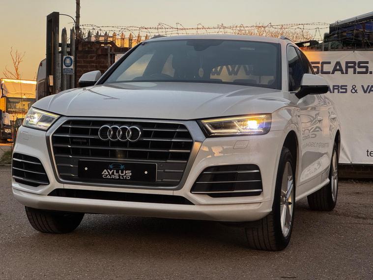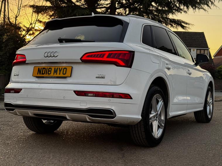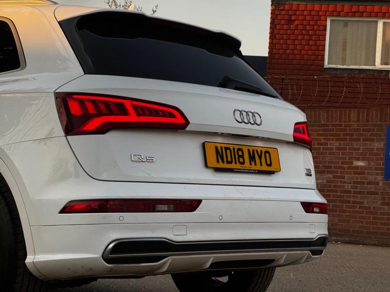 This 2018 Audi Q5 TDI S line presents an exceptional opportunity with its remarkably low mileage of just 49, 000 miles. This Four Wheel Drive SUV is equipped with a 2.0-litre diesel engine and meets Euro 6 emissions standards. Inside, you'll find the convenience of the Audi Phone Box with wireless charging, an Extended LED Interior Lighting Package offering multi coloured ambient lighting, and a practical Storage Package. The vehicle also features stylish 19-inch alloy wheels in a 5-spoke dynamic design with a diamond cut finish, and benefits from Audi's Pre Sense Basic safety system. Recently serviced and comes with 6 months warranty as well as 12 months AA Breakdown cover. Optional Extras:Daytime Running Lights Cruise Control DAB Radio Audi Smartphone interfaceWireless Mobile Phone ChargingHeated Seats mDual Climate control Rear Climate ControlS Line Steering Wheel (Flat Bottom)Electric Boot Release and close Ambient LightsSatellite Navigation (Sat Nav) – built-in guidance with live mapsBluetooth & BT Connect – hands-free calling and media streamingS line sports seats & steering wheel – premium styling and comfortQuattro (4-Wheel Drive) – enhanced grip and control in all conditions…and many more luxury features? Why Buy From Us?-Every Vehicle Undergoes a 120-Point Inspection -Fully Valeted Before Sale -Nationwide Delivery to Your Home or Workplace -6-Month GOLD Warranty – Full Parts & Labour Cover -AA Approved Dealer Status for Your Peace of Mind.