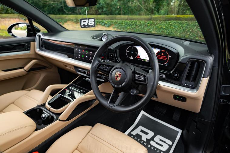 BOASTING EXCEPTIONALLY LOW MILEAGE FOR A 2024 MODEL, THIS ONE OWNER PORSCHE CAYENNE V6 E-HYBRID PRESENTS A REMARKABLE OPPORTUNITY. THIS FOUR WHEEL DRIVE VEHICLE FEATURES A 3.0 LITRE PETROL PLUG IN HYBRID ENGINE, MEETING EURO 6 EMISSIONS STANDARDS. IT IS EQUIPPED WITH A HEATED MULTIFUNCTION STEERING WHEEL COMPLETE WITH SHIFT PADDLES, AND EXTERIOR MIRRORS PAINTED TO MATCH THE CAR'S EXTERIOR COLOUR. THE STRIKING 22 INCH SPORT DESIGN ALLOY WHEELS, FEATURING WHEEL ARCH EXTENSIONS IN THE EXTERIOR COLOUR, FURTHER ENHANCE ITS PRESENCE. INSIDE, THE FRONT SEATS BENEFIT FROM THE PORSCHE CREST EMBOSSED ON THE HEADRESTS, AND THE WHEEL CENTRES PROUDLY DISPLAY THE FULL COLOUR PORSCHE CREST. WITH A SUBSTANTIAL BOOT SPACE, THIS CAYENNE IS AS PRACTICAL AS IT IS STYLISH.THE PERFORMANCE OF THIS CAYENNE IS TRULY IMPRESSIVE, ACHIEVING 0 TO 62 MILES PER HOUR IN JUST 4.9 SECONDS, DEMONSTRATING ITS DYNAMIC CAPABILITIES. THIS RAPID ACCELERATION SETS IT APART FROM MANY OTHER VEHICLES IN ITS CLASS. FURTHERMORE, ITS IMPRESSIVE TOWING WEIGHT OF 3500 KG MEANS IT IS WELL EQUIPPED FOR A VARIETY OF NEEDS, OFFERING VERSATILITY BEYOND TYPICAL PASSENGER CARS..